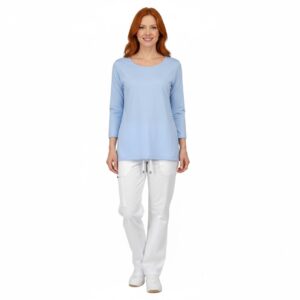 Lækker og eksklusiv interlock dame T-shirt med rund hals, hvor stil og komfort går hånd i hånd. Flot afslutning på halsrib. Fremstillet af bedste bomuldskvalitet, der sikrer optimal komfort og perfekt pasform.