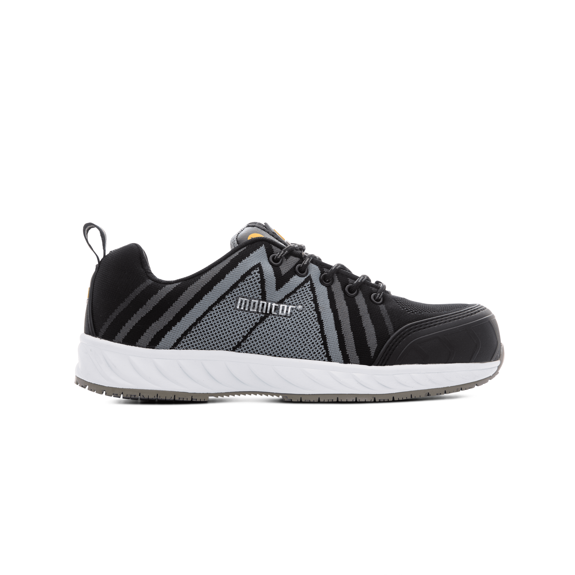 Sikkerhedsskoen har tåværn af komposit, et fleksibelt sømværn og er i sikkerhedsklasse S1P