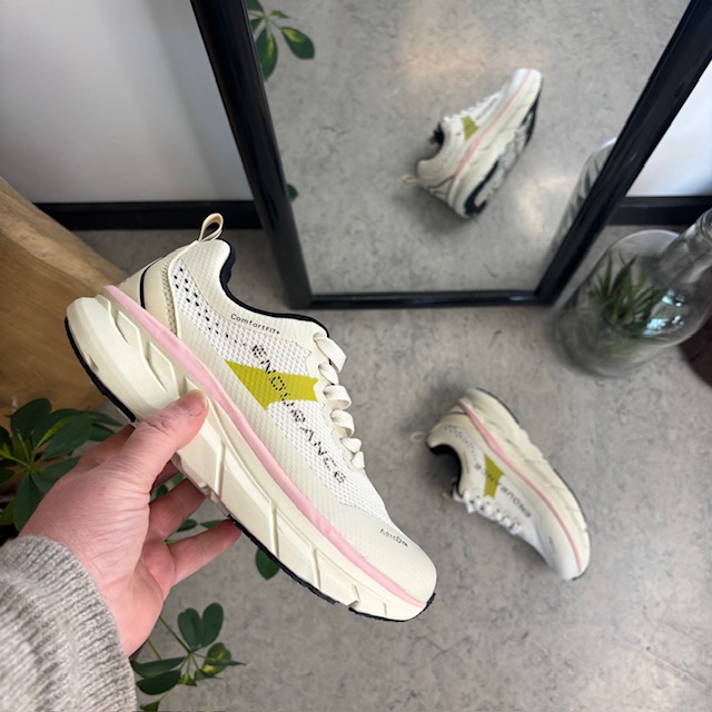 Skoen er designet med ComfortFit+, en blød og dæmpende indlægssål, der kan tages ud for optimal pasform og støtte.