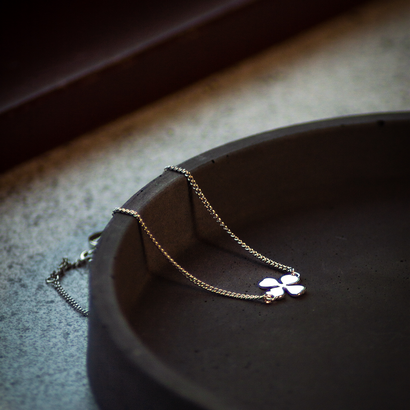Armbånd med firkløveret i sølv.