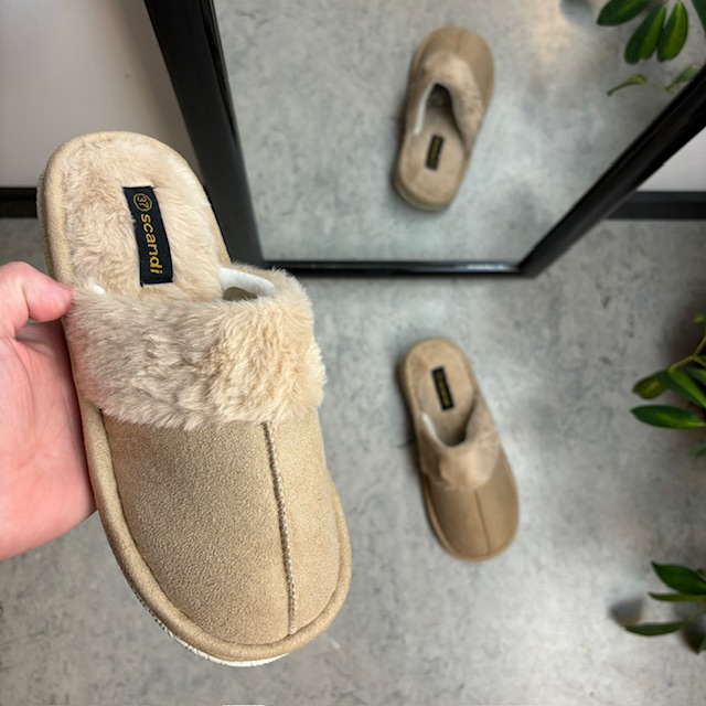 Beige Slip In sutsko med blødt syntetisk pels.