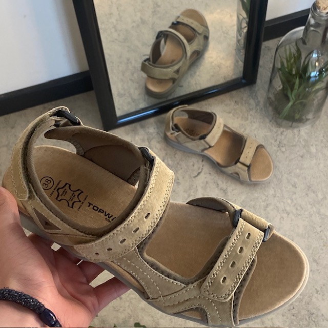 Denne sandal i naturinspirerede nuancer er skabt til dig, der vil have maksimal støtte uden at gå på kompromis med stil og lethed. Med tre justerbare velcrostropper får du en fleksibel pasform, og den bløde indersål giver en behagelig følelse – uanset om du går på arbejde, ferie eller en lang gåtur.