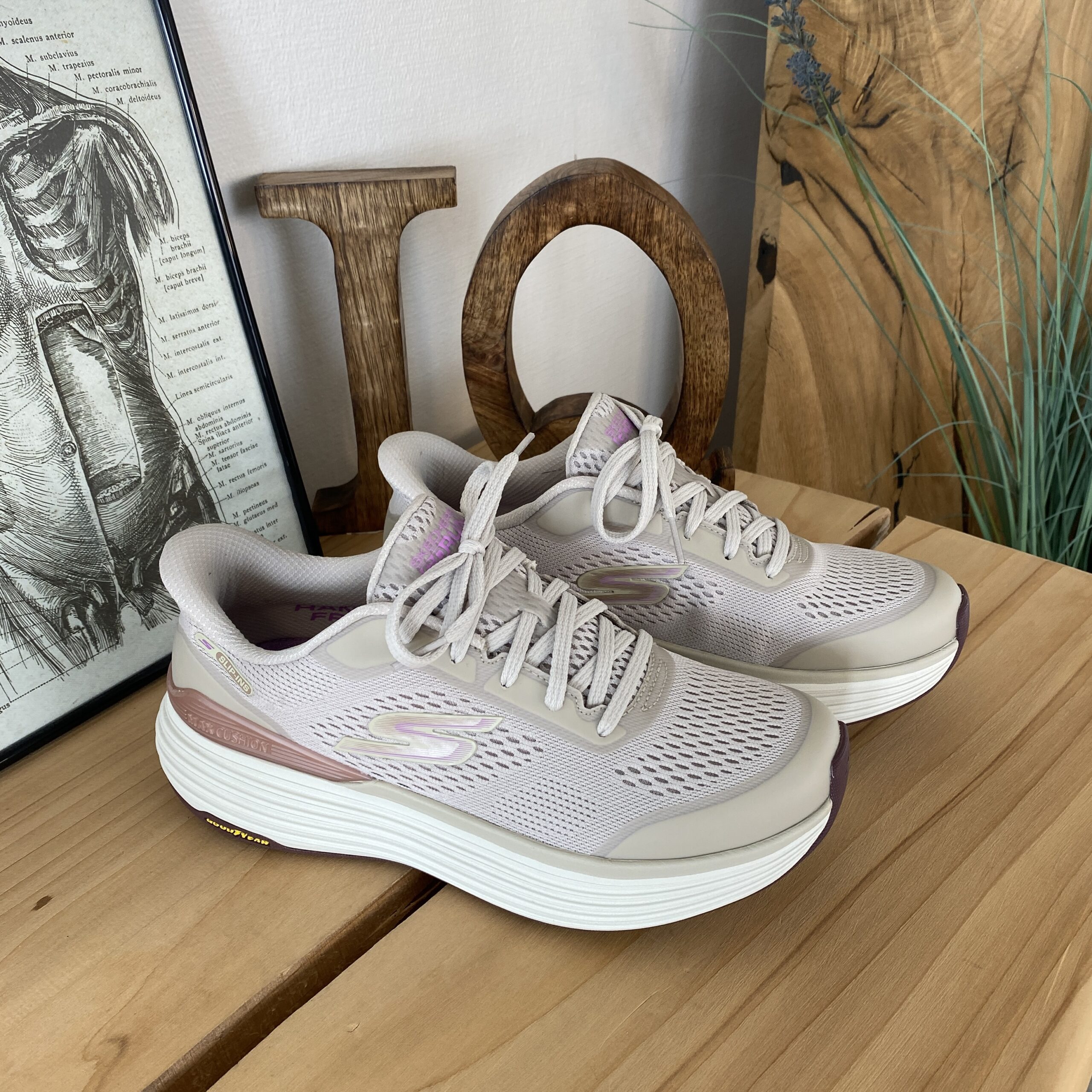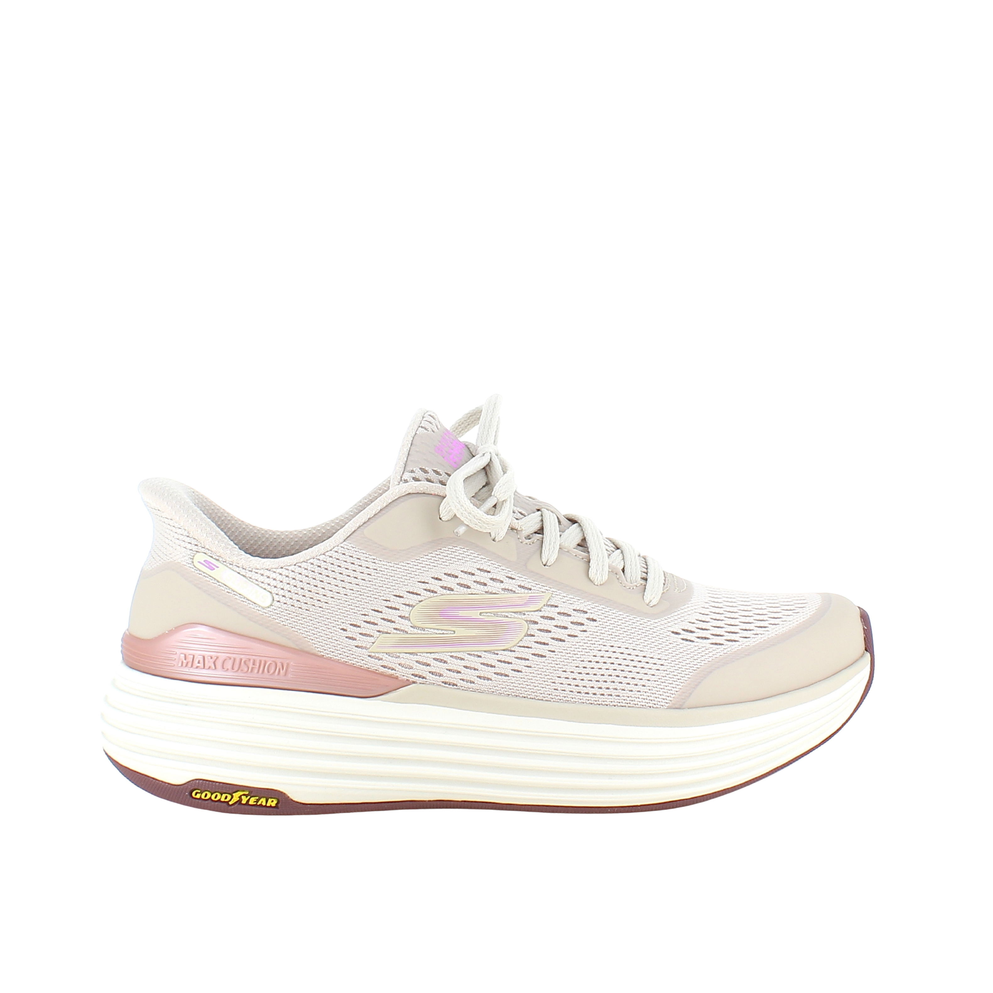 Beige Skechers slip-in med MaxChusion bund