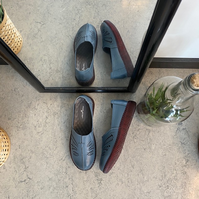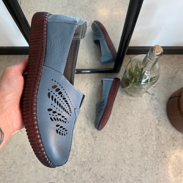 Blå ballerina i skind – en elegant sko med en overdel udført i blødt skind.