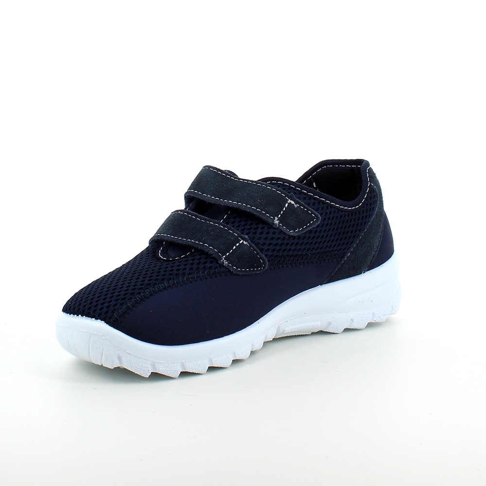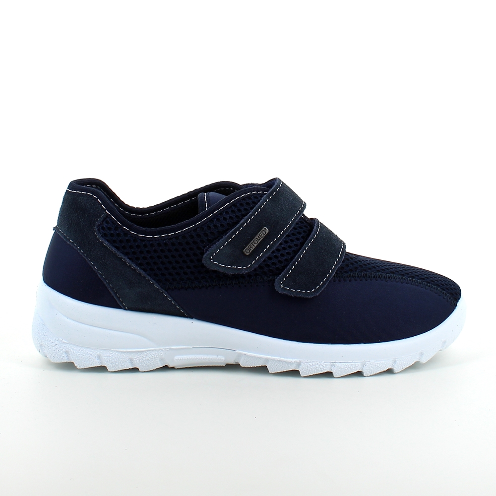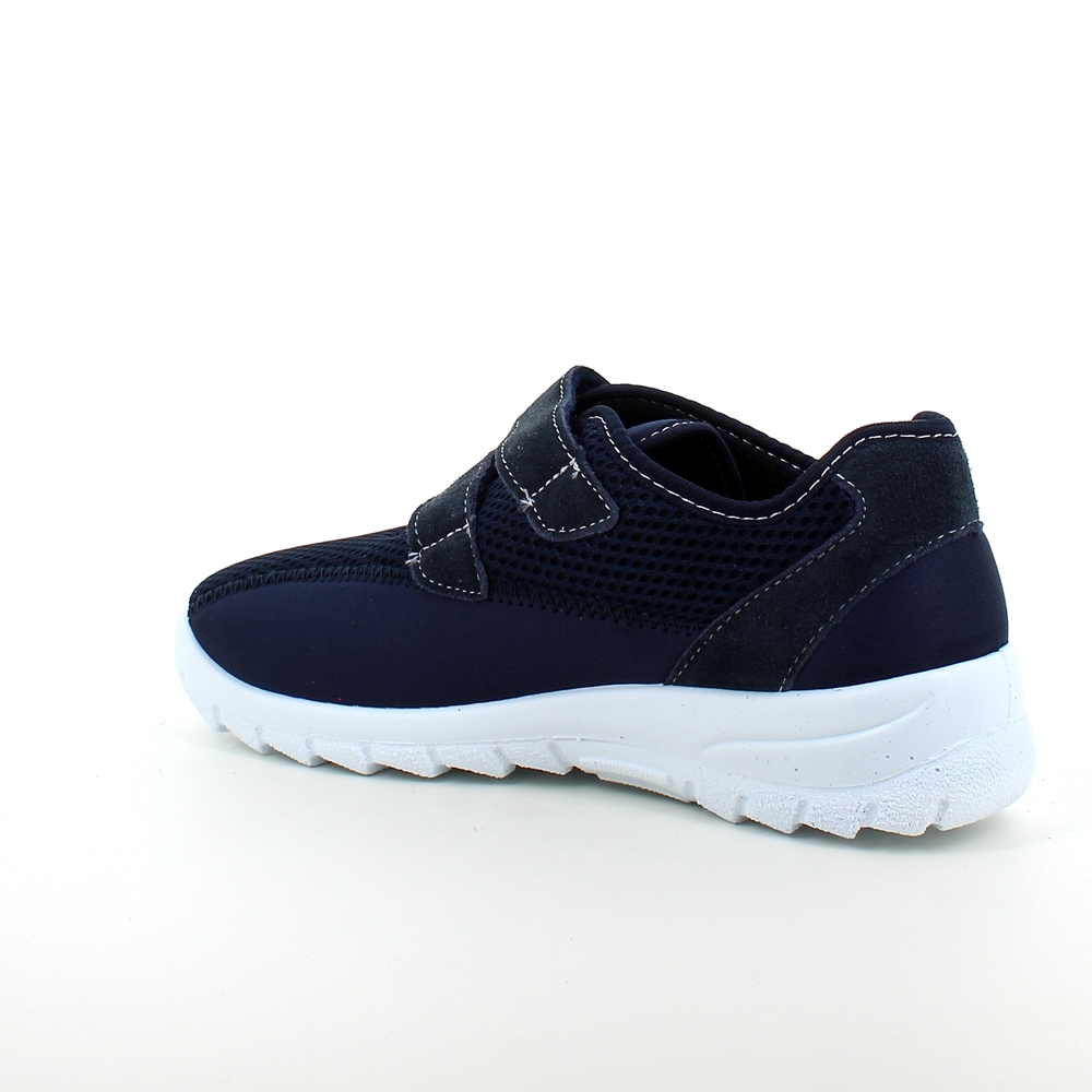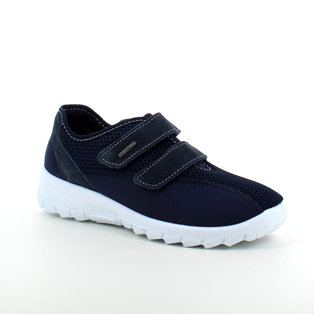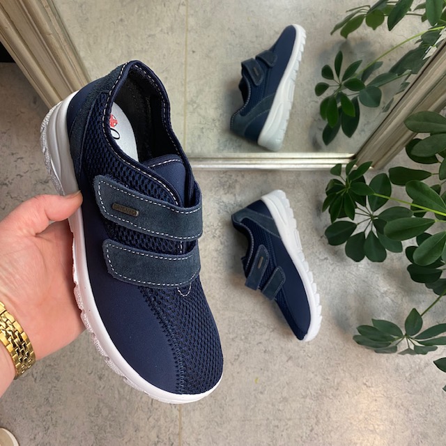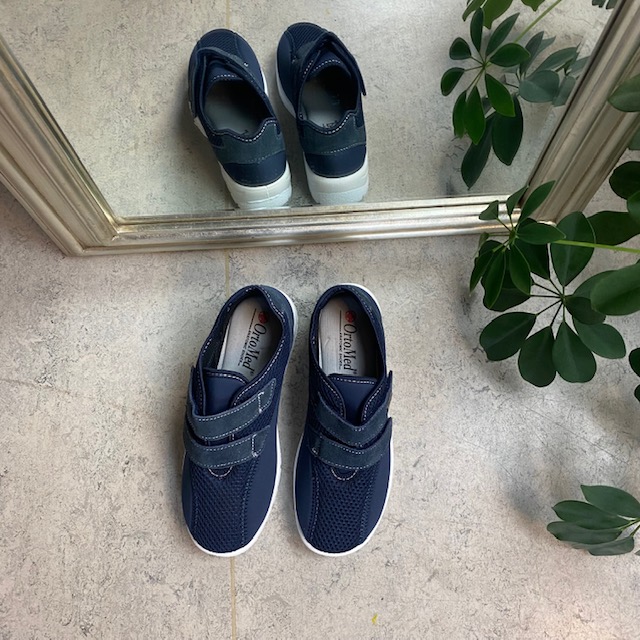 Sko i blå med skind detaljer og en meget bred pasform.