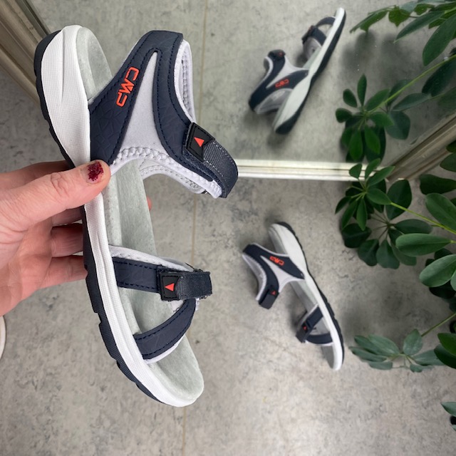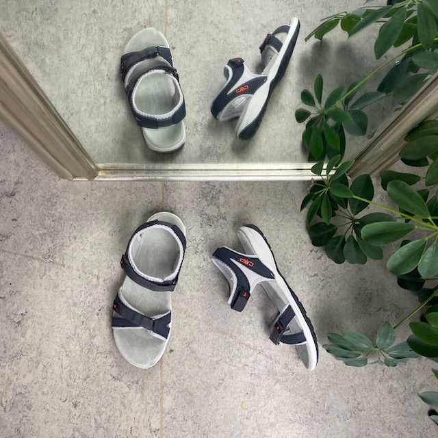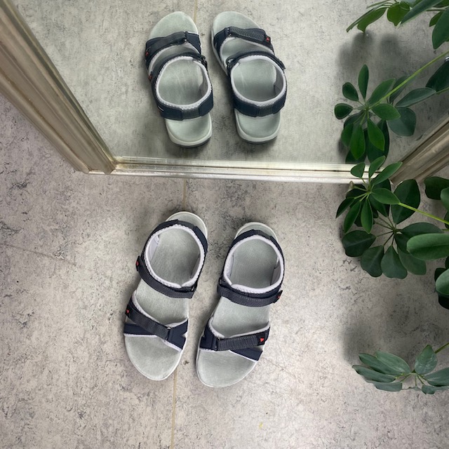 Sandalen kan reguleres i velcro remmene på forfod og vrist.