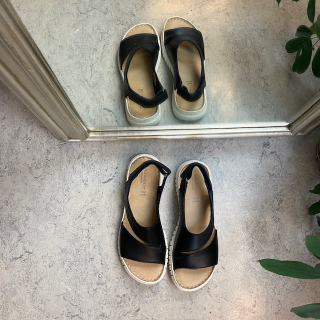 Flot sort skindsandal fra Relaxshoe med to faste remme over forfoden
