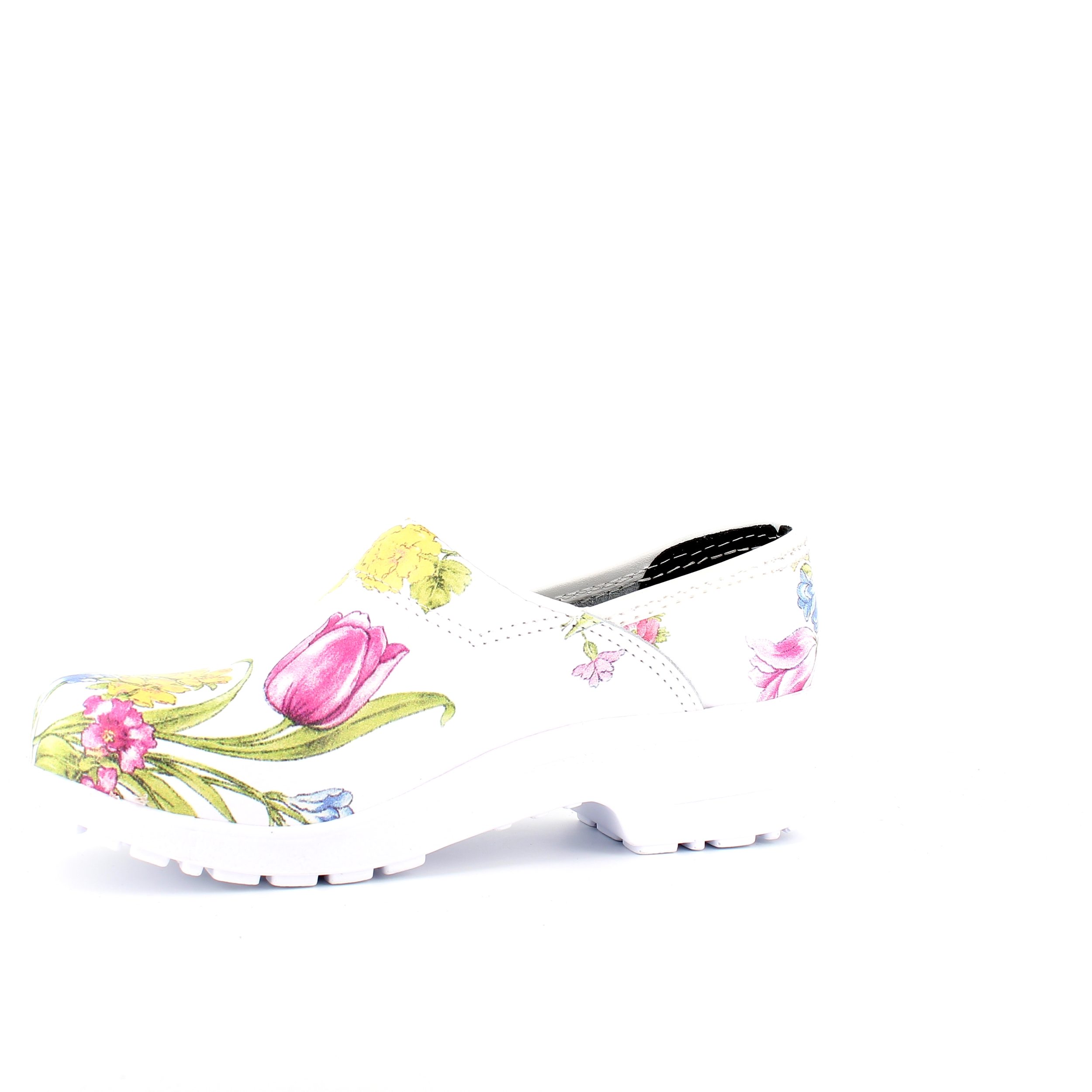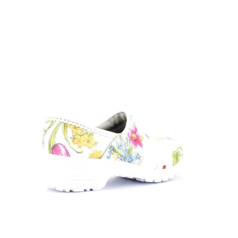 Hvid blomstret træsko i Dansk kvalitet med kap.
