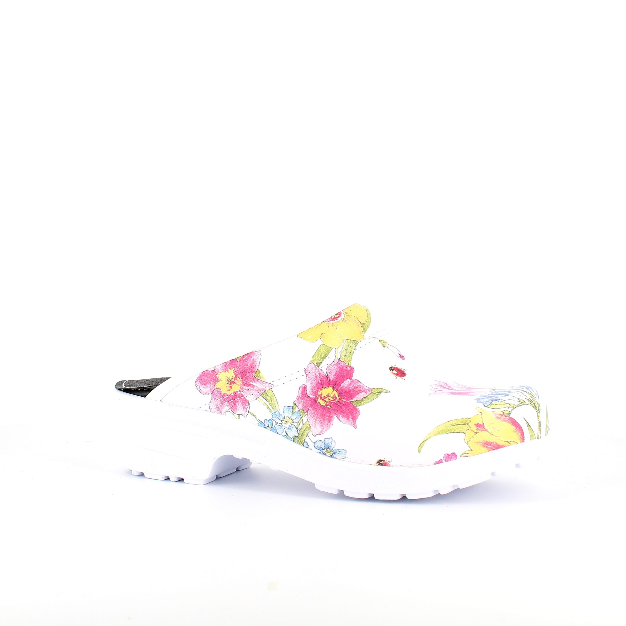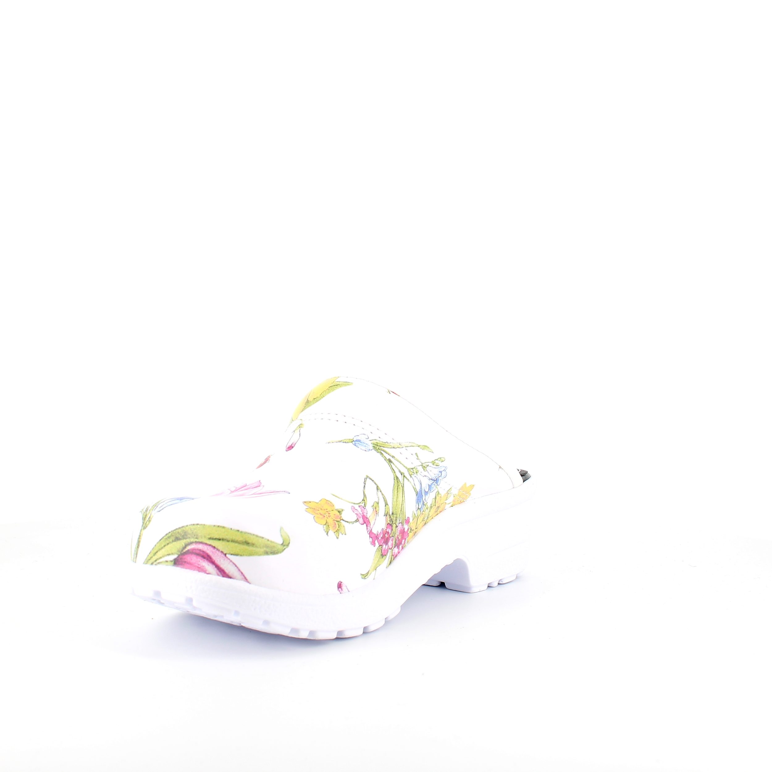 Hvid blomstret træsko i Dansk kvalitet uden kap.