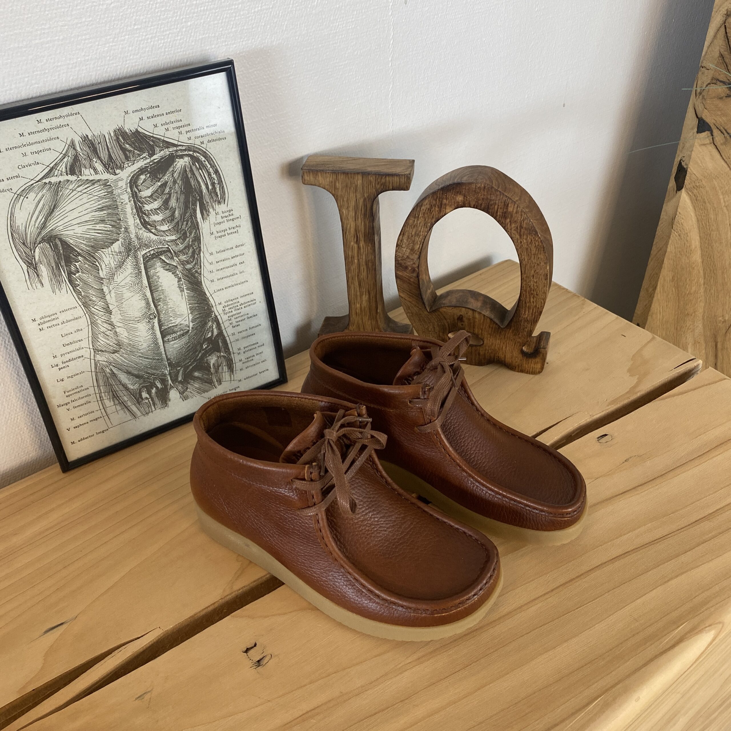 Denne sko er designet i brun læder.