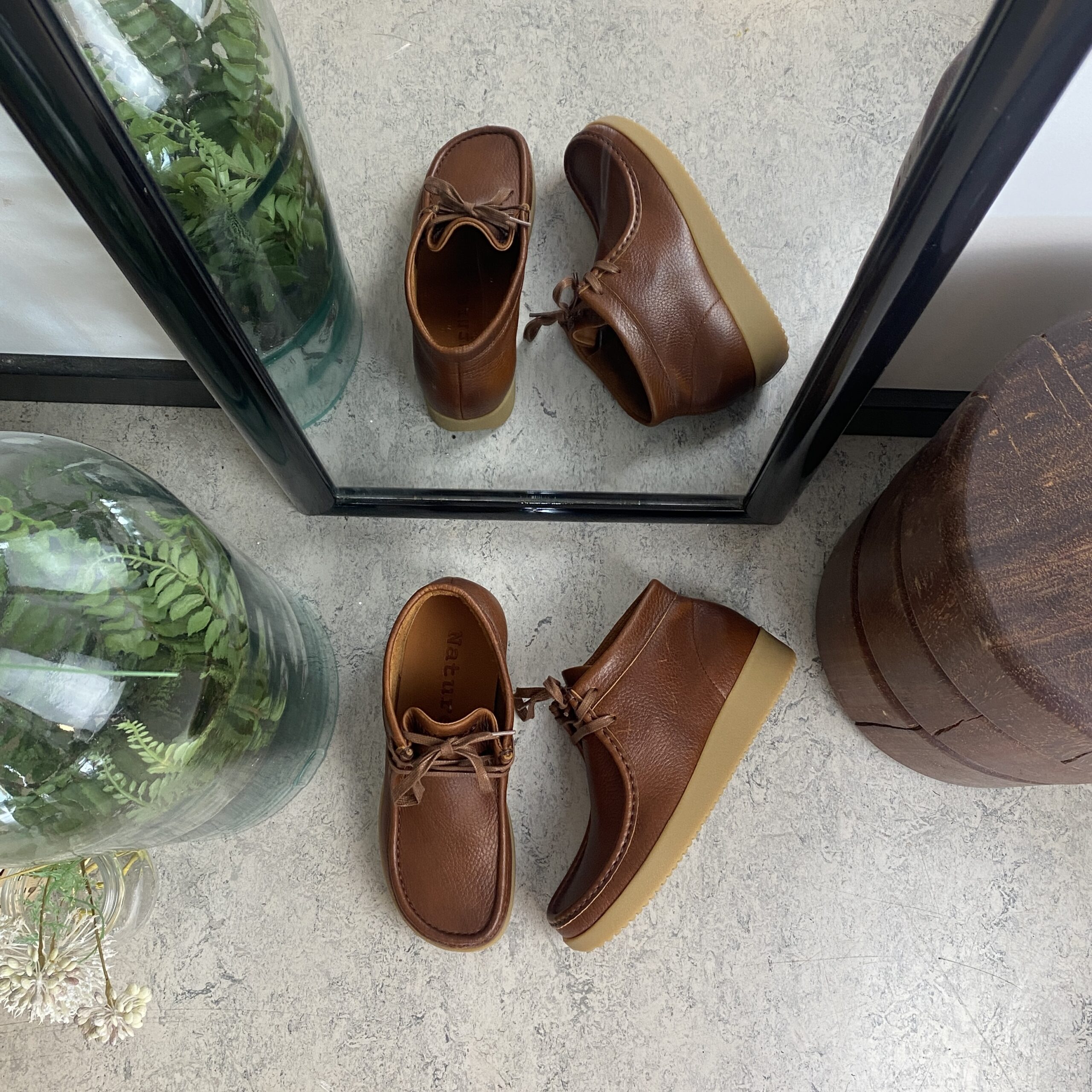 Brun Nature lædersko med snørelukning