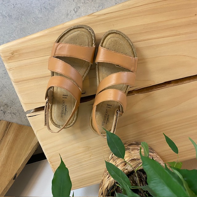 Flot brun skindsandal fra Relaxshoe med fire velcroremme.