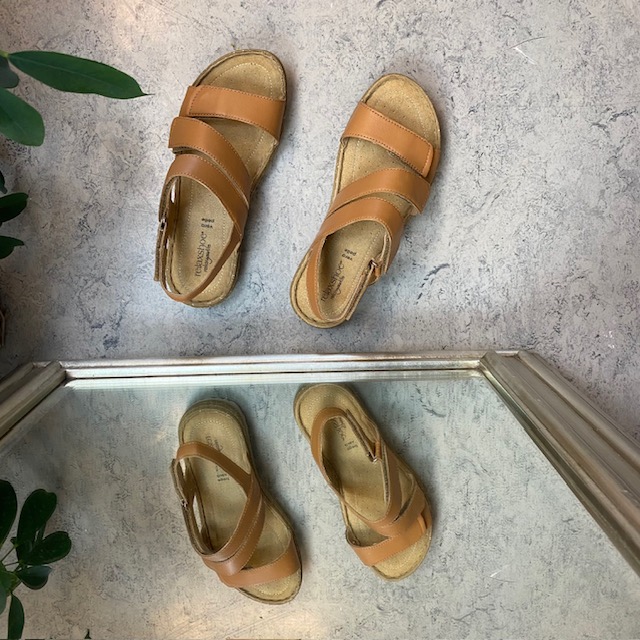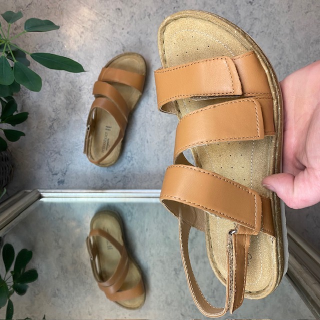 Brun skindsandal med fire indstillelige remme fra Relaxshoe