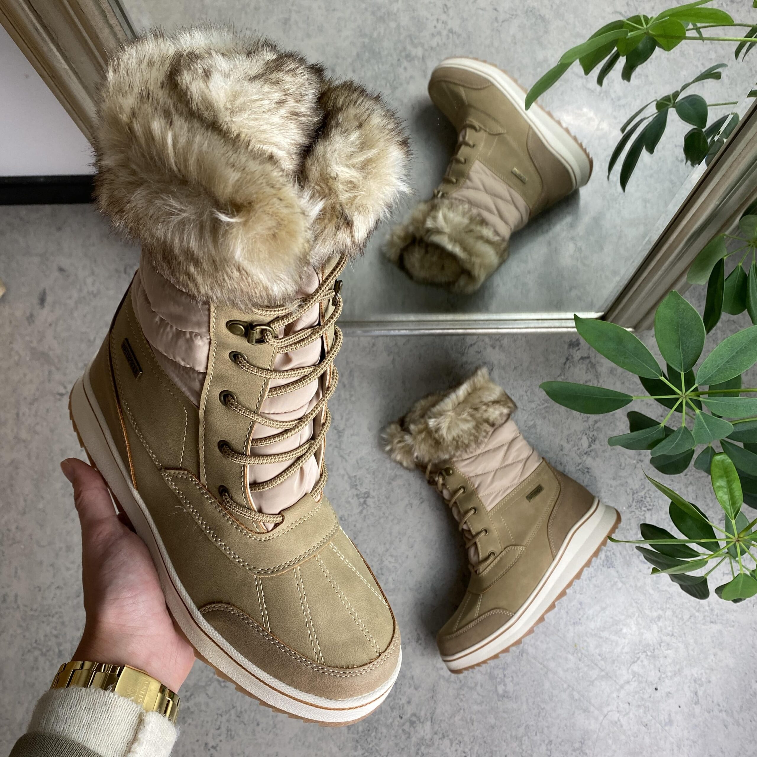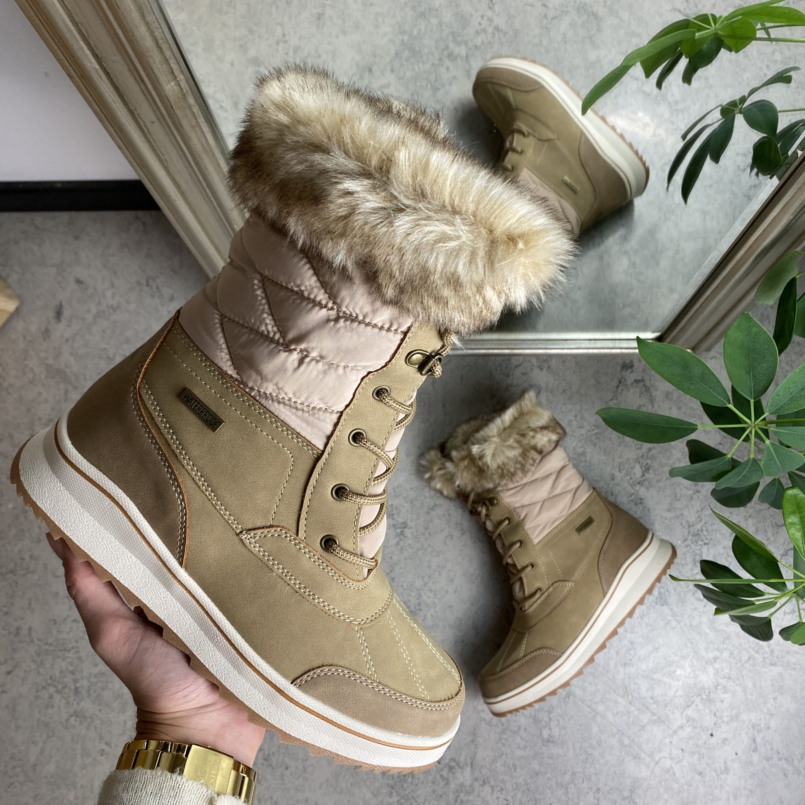 Støvlen er vandtæt og har fine detaljer.