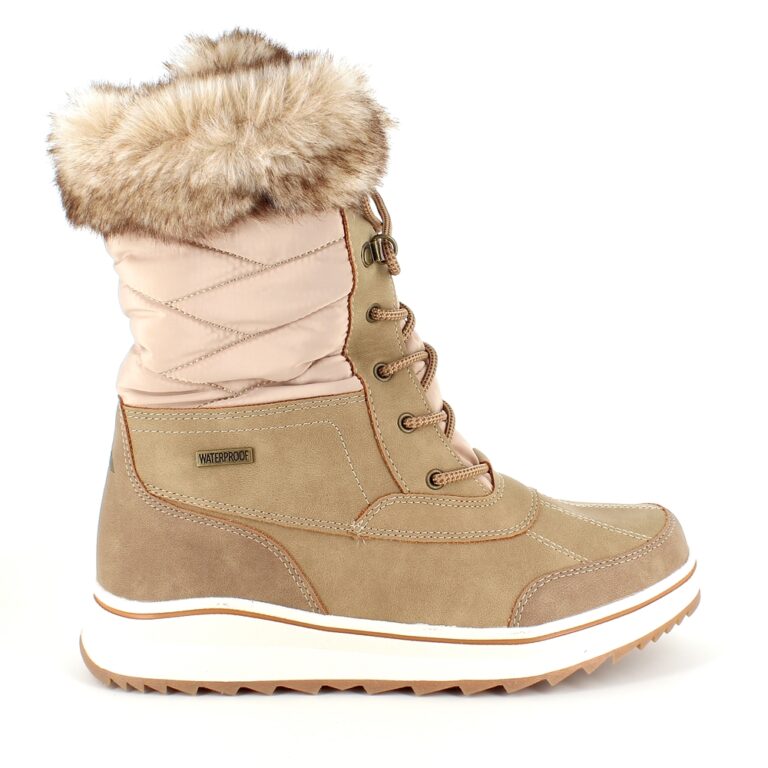 Brun vinterstøvle fra Mols, designet med vandtætning og pelskant, tilbyder både stil og komfort.