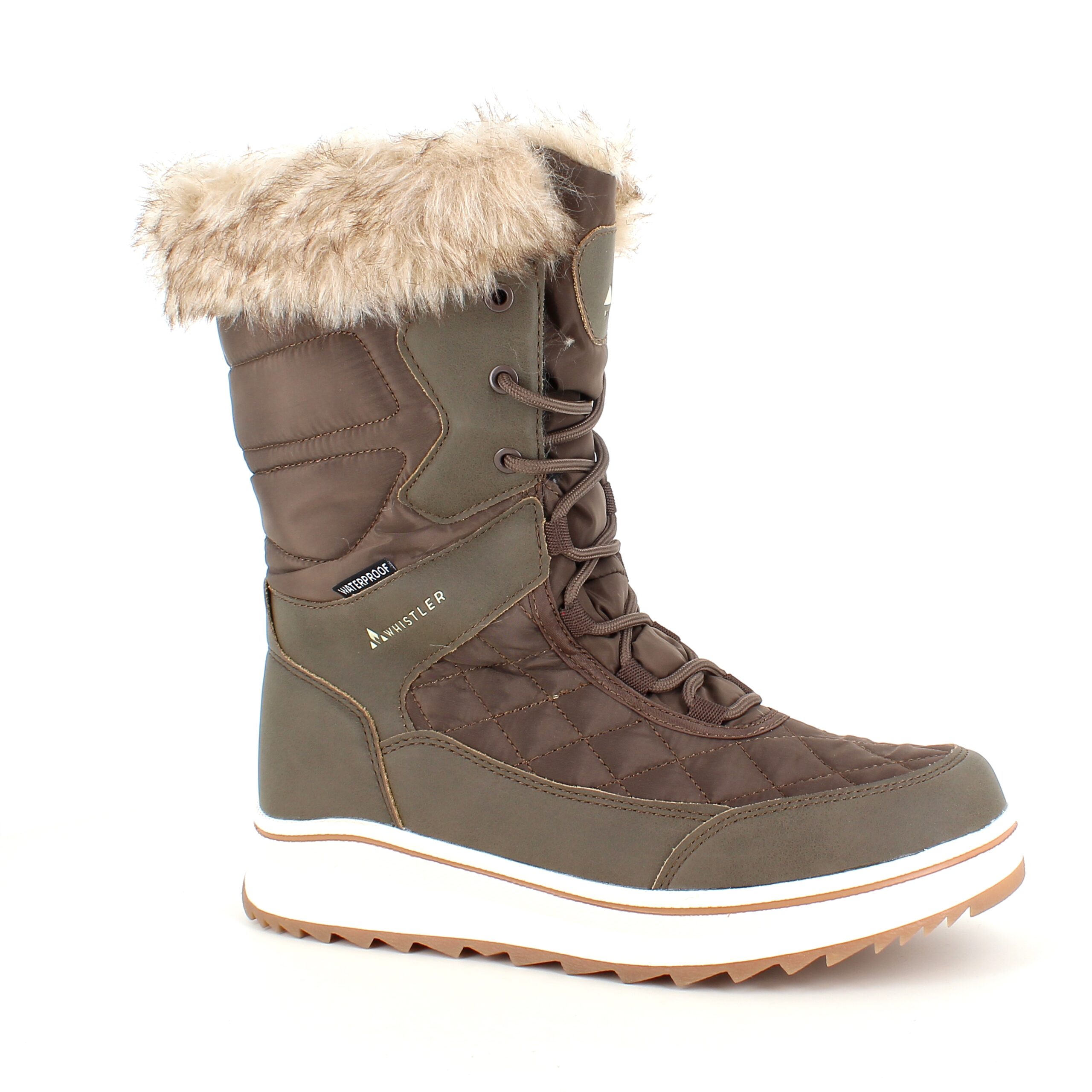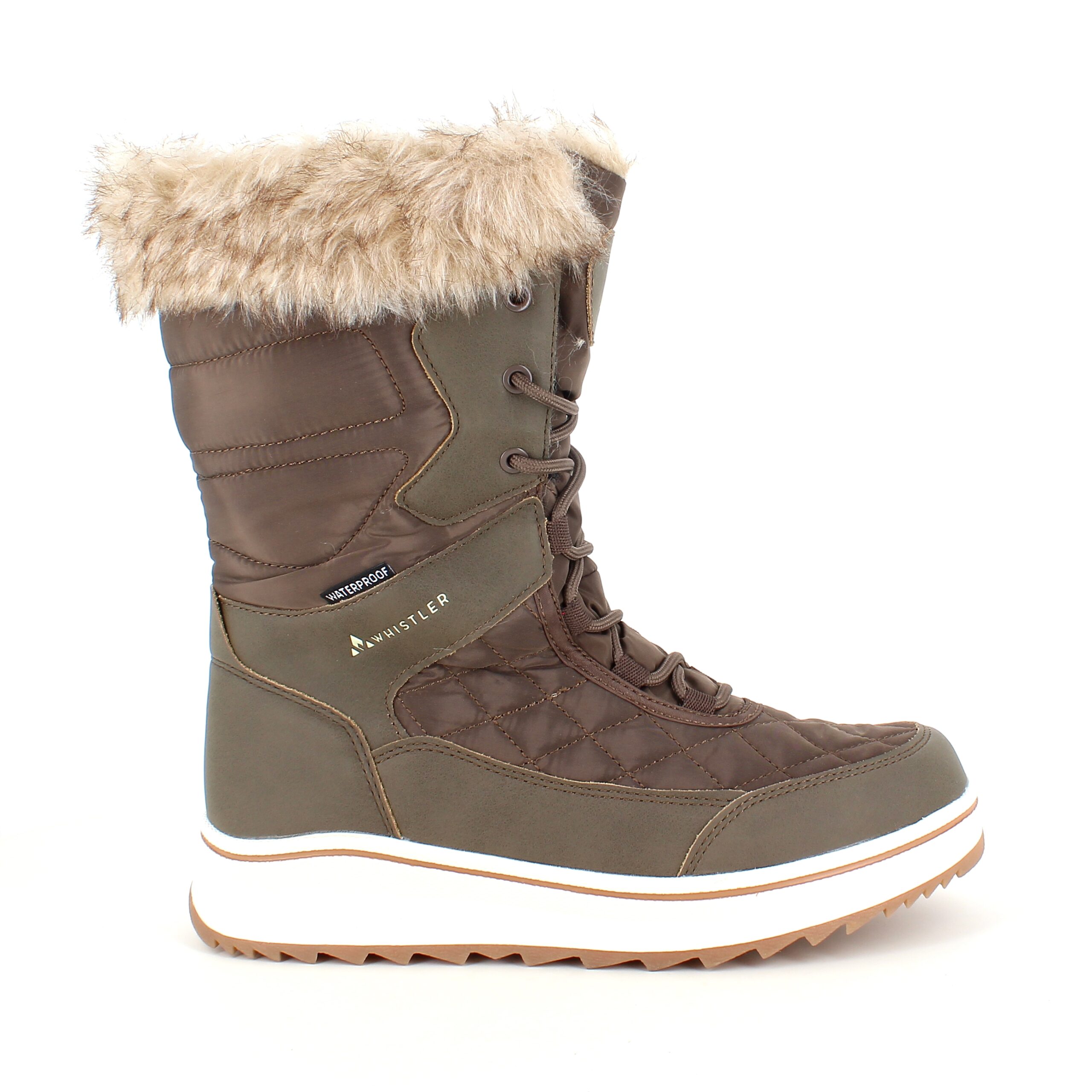 Mørke brun vinterstøvle fra Whistler, designet med vandtætning og pelskant, tilbyder både stil og komfort.