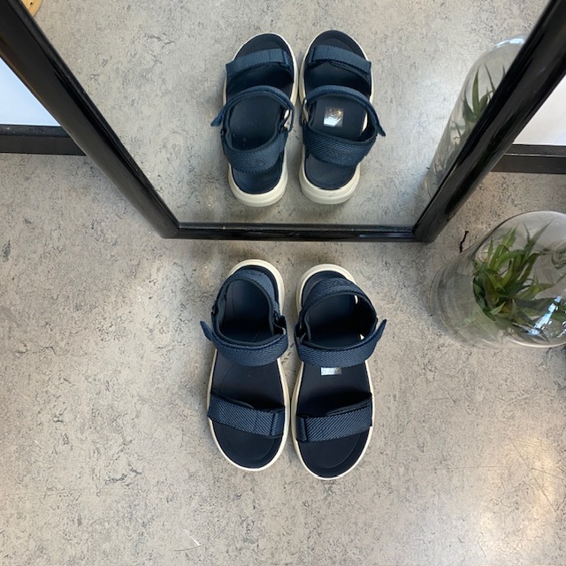 Sandalen har 2 justerbare remme over forfoden og omkring anklen.