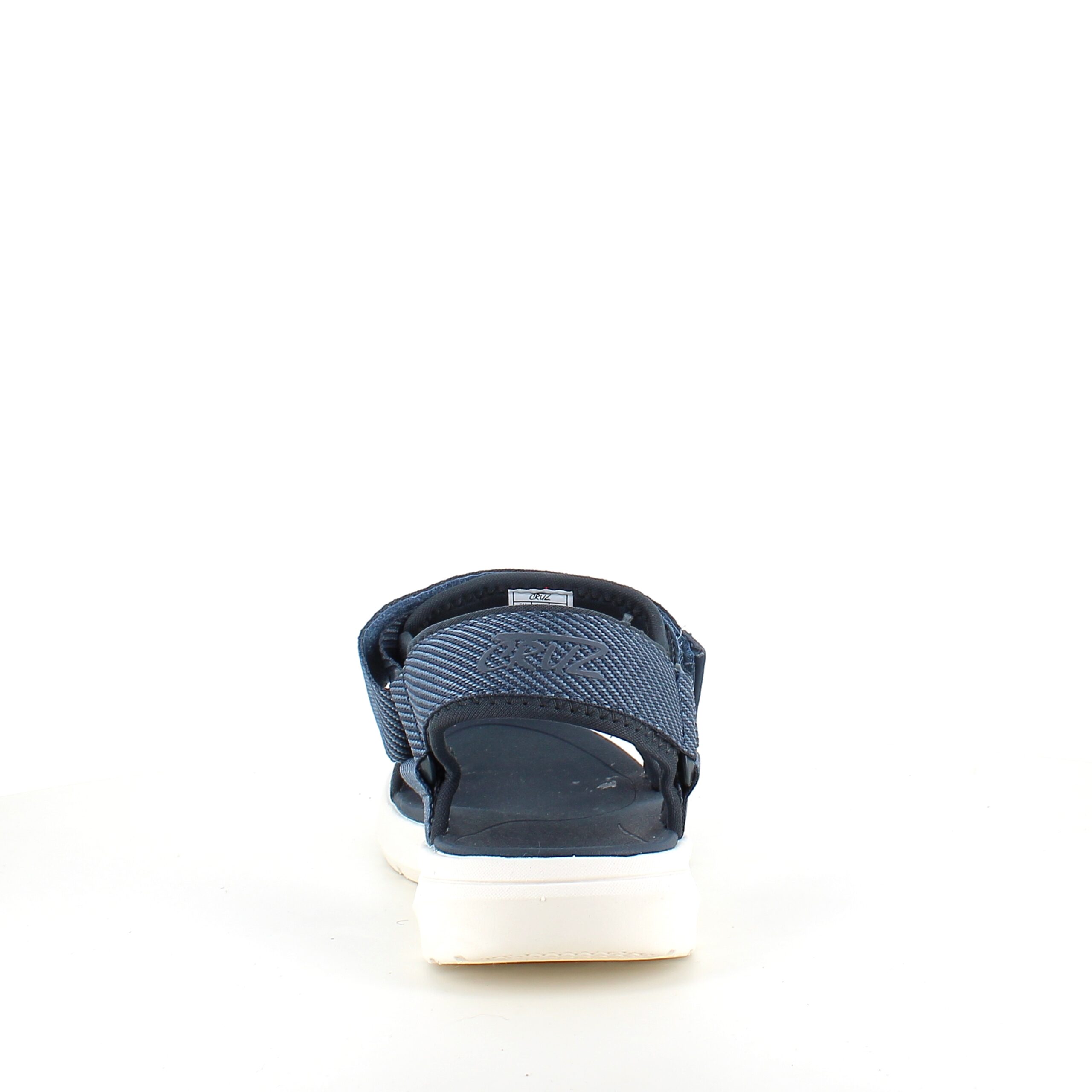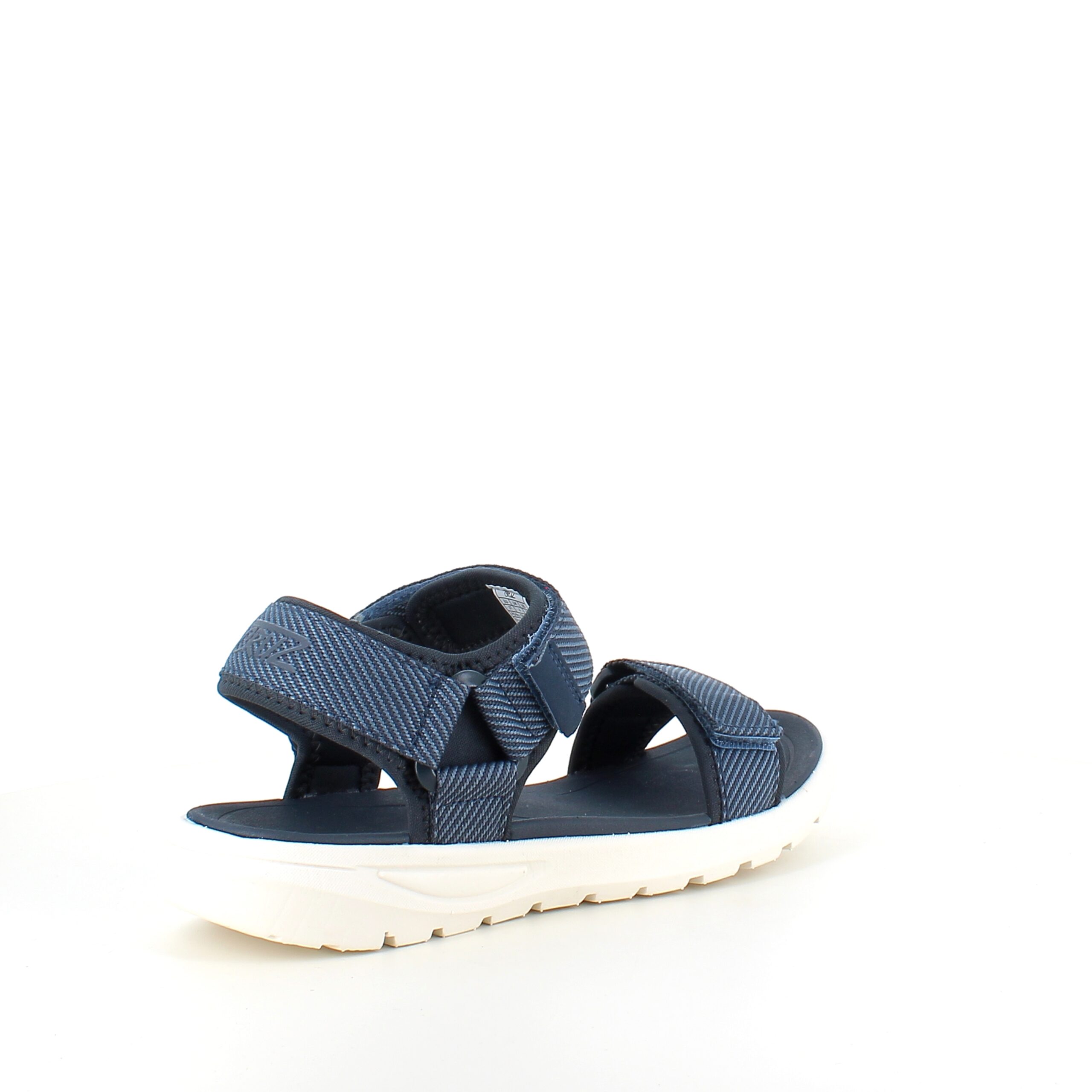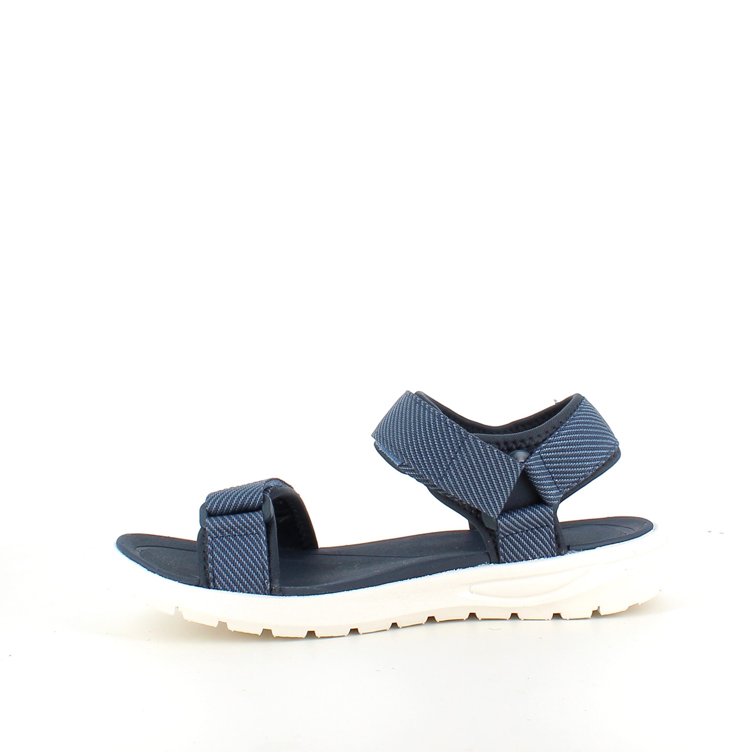 Den blå sandal er udstyret med brede remme og justeringsmuligheder, der sikrer optimal pasform, hvilket gør den særligt velegnet til brede fødder.