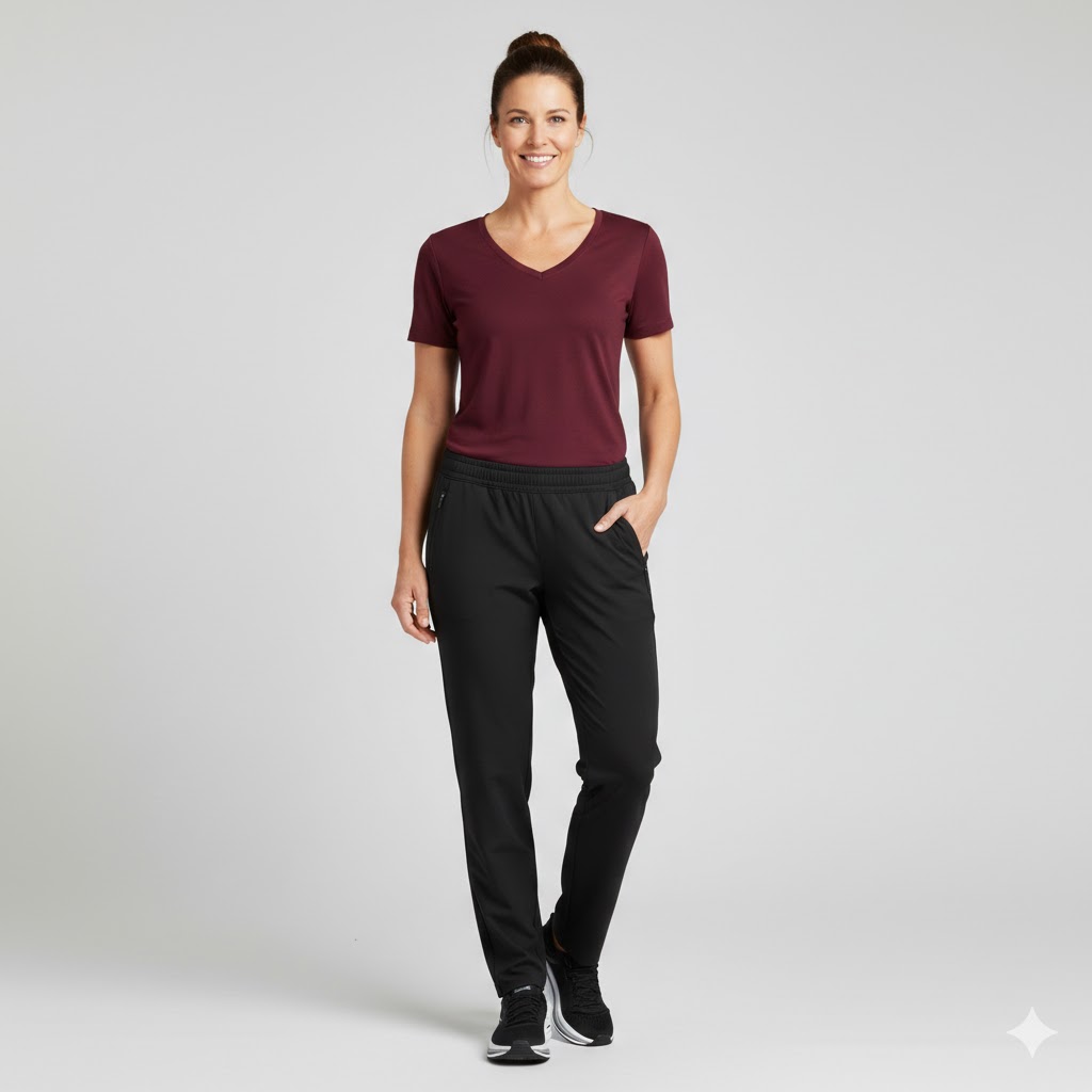 Dame t-shirt fra ID i mørk bordeaux med v-hals