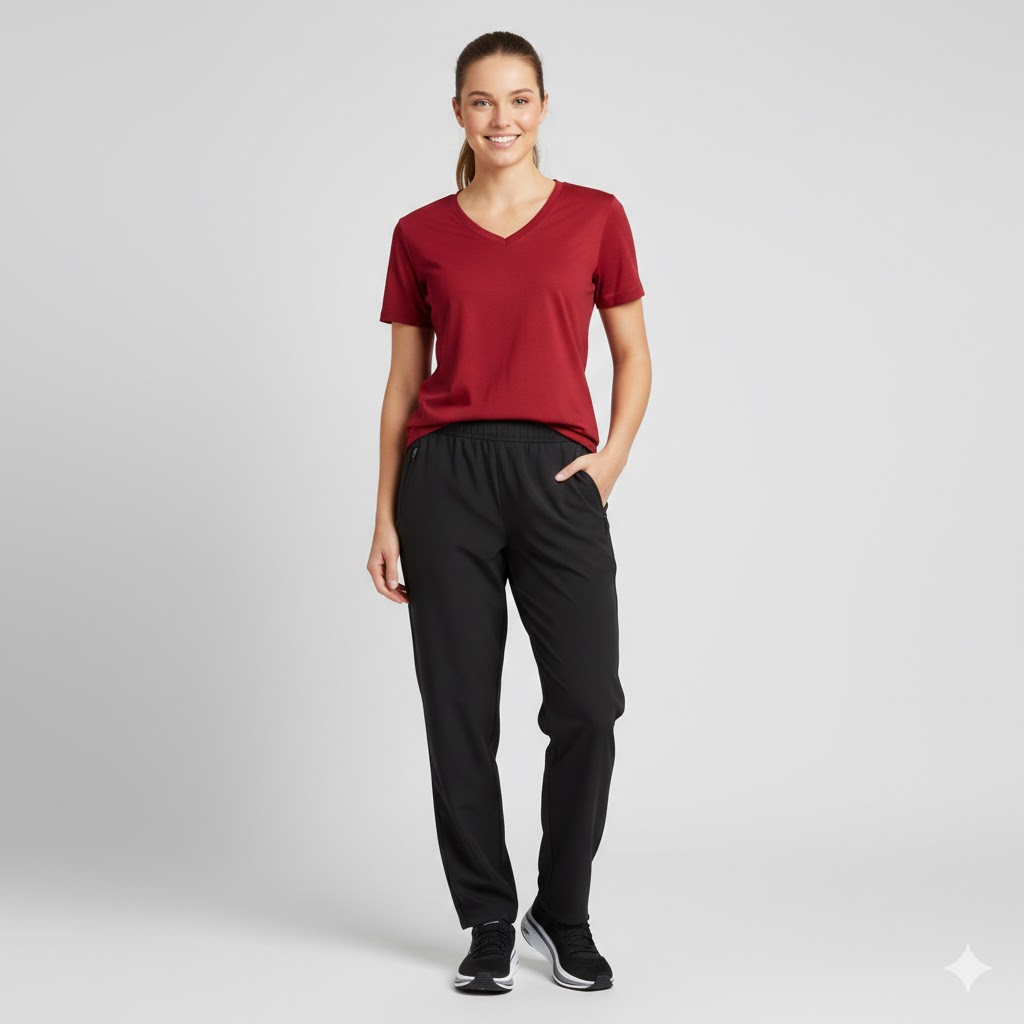 Dame t-shirt i rød med v-hals