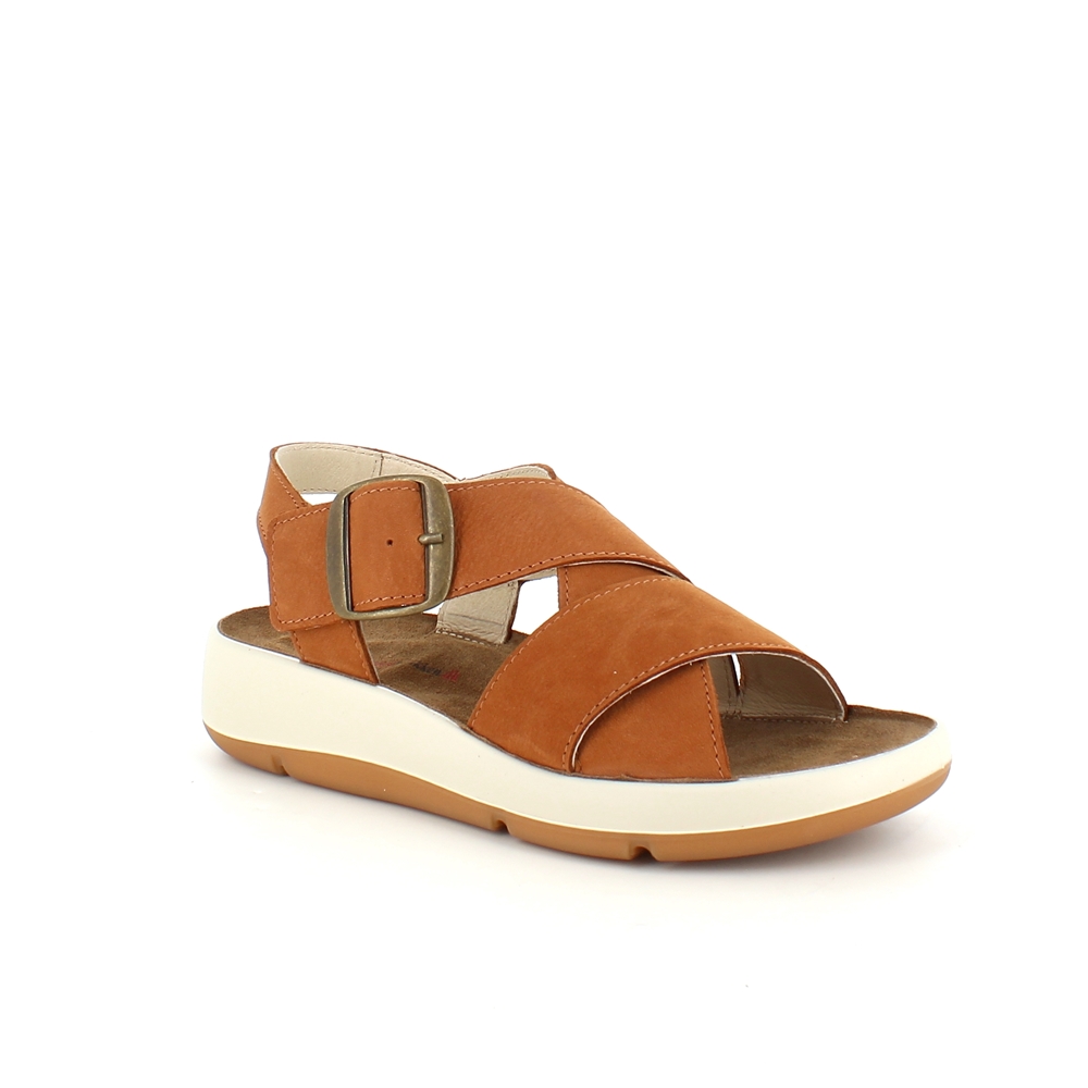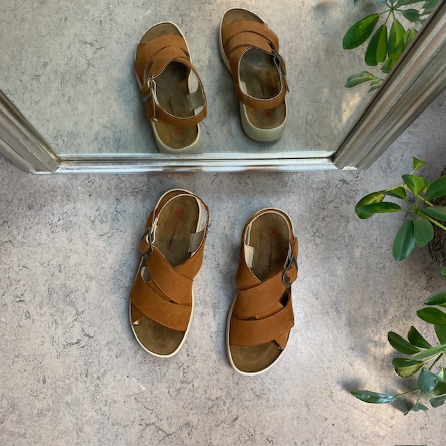 Elegant brun sandal i skind med svangstøtte