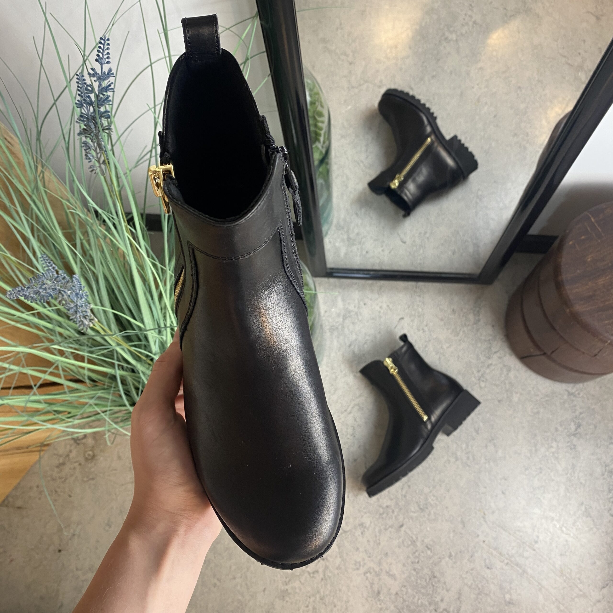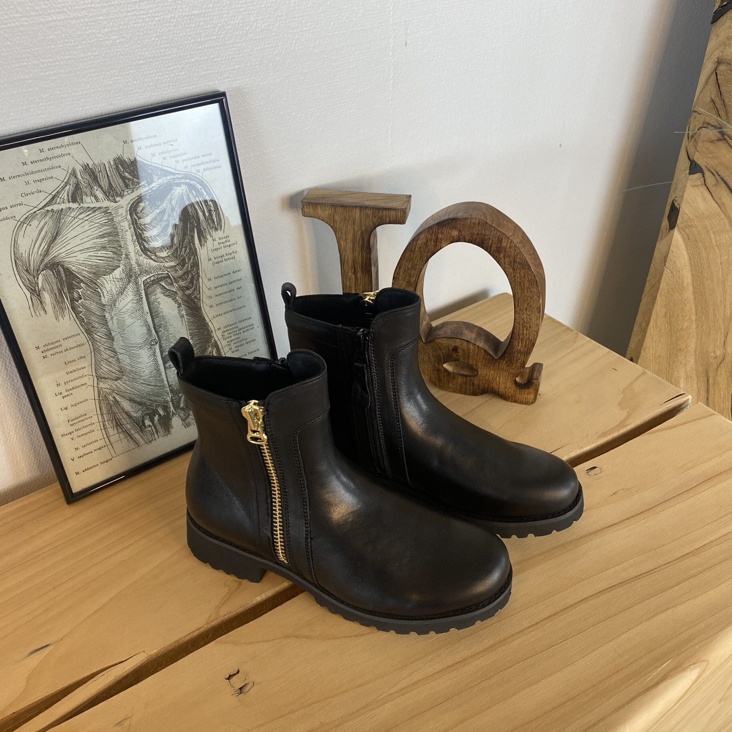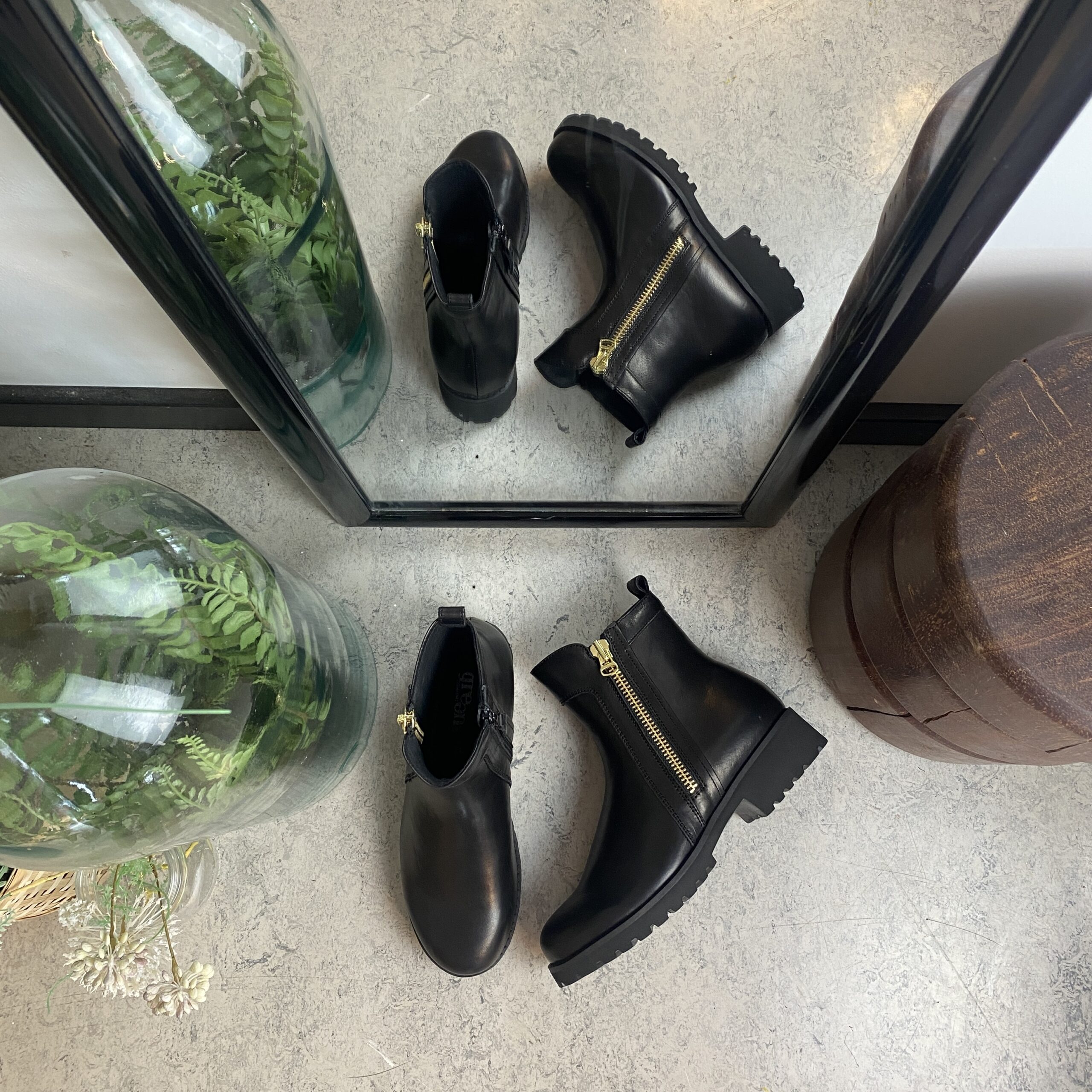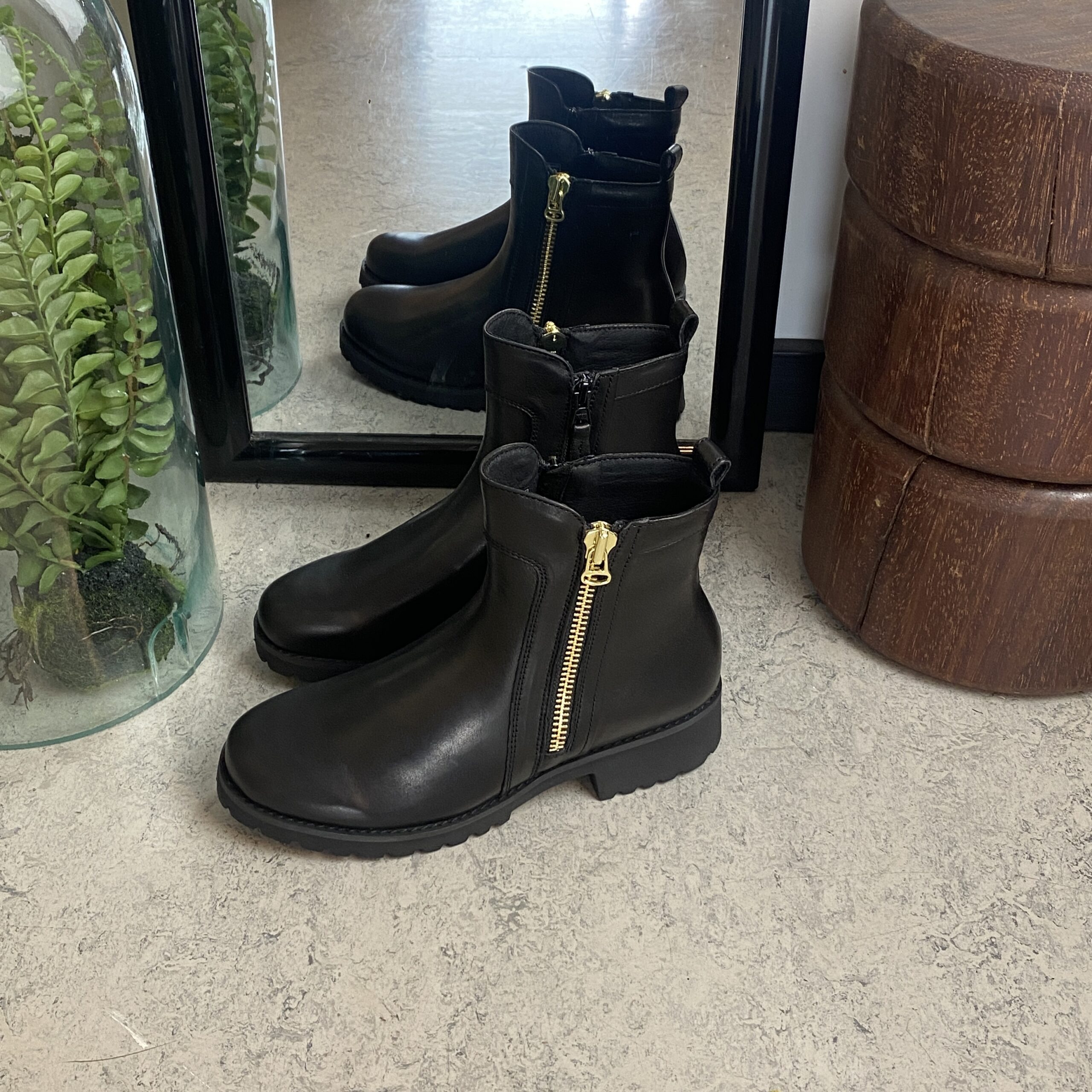 Støvlen er en elegant støvle med dobbelt lynlås, der gør den nem at tage på.