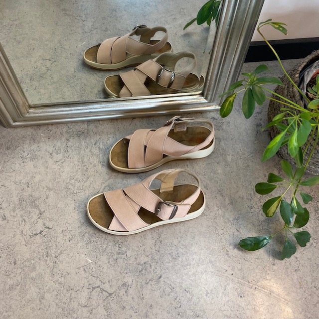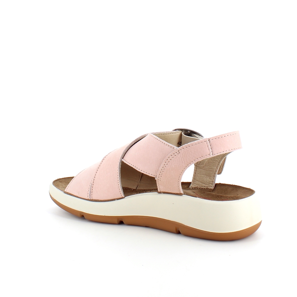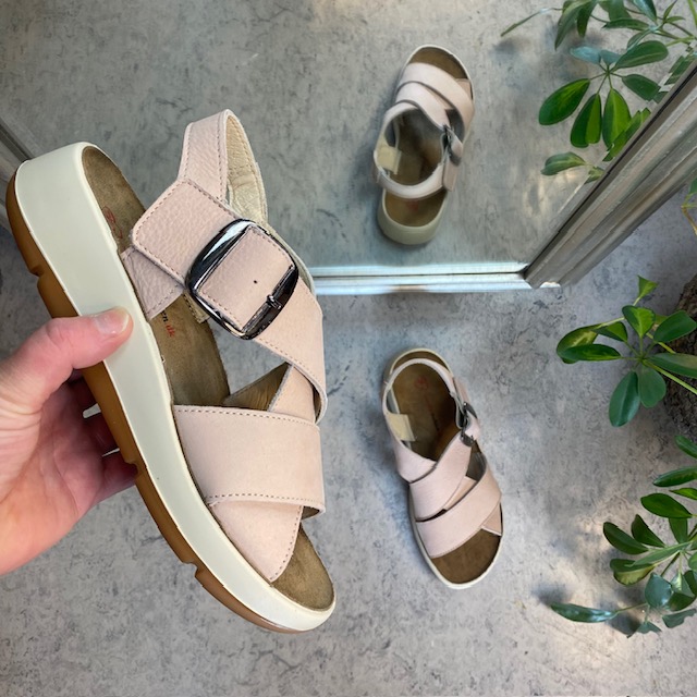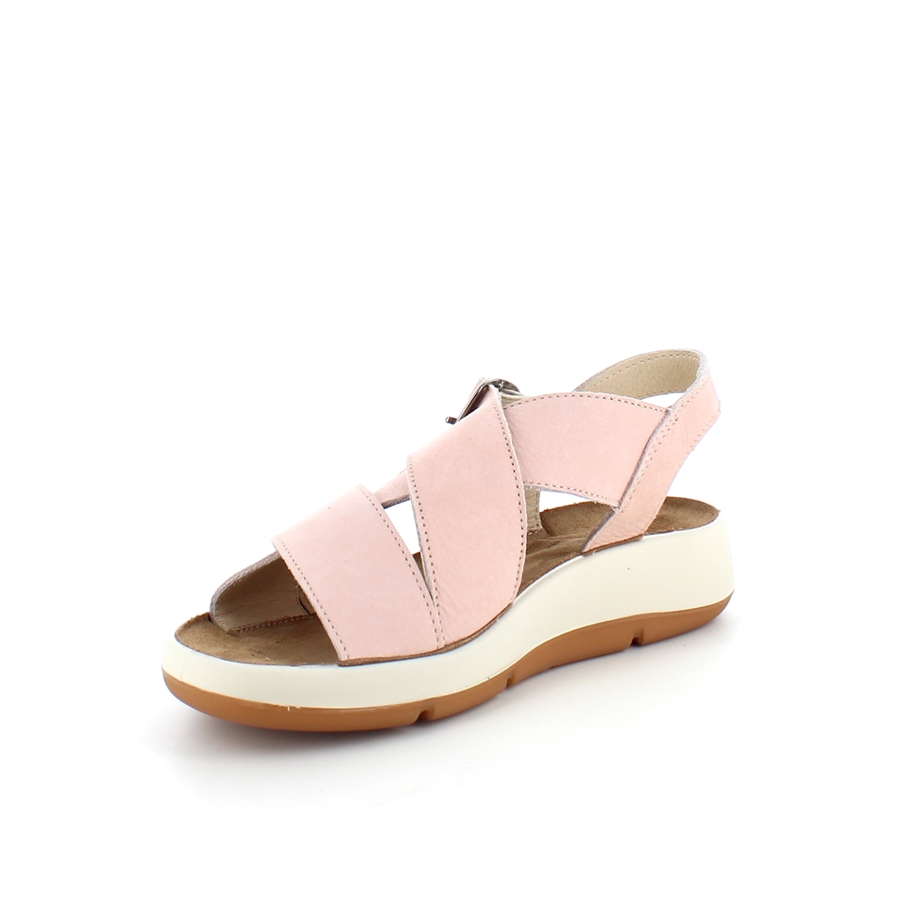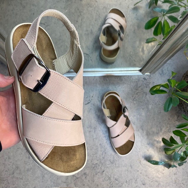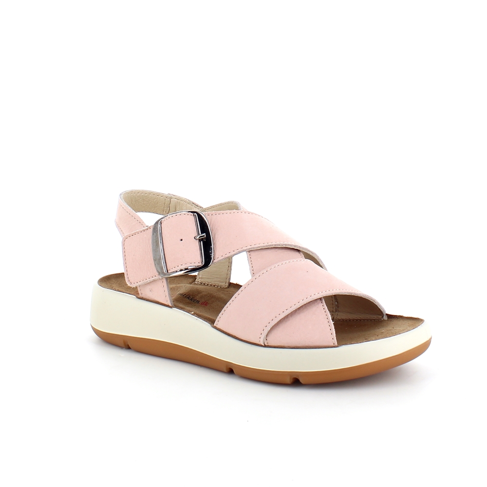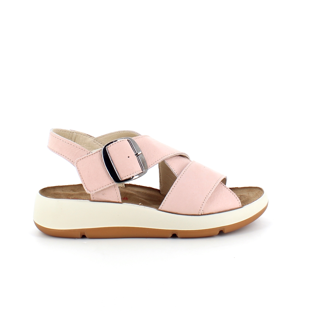 Elegant rosa sandal i skind med svangstøtte