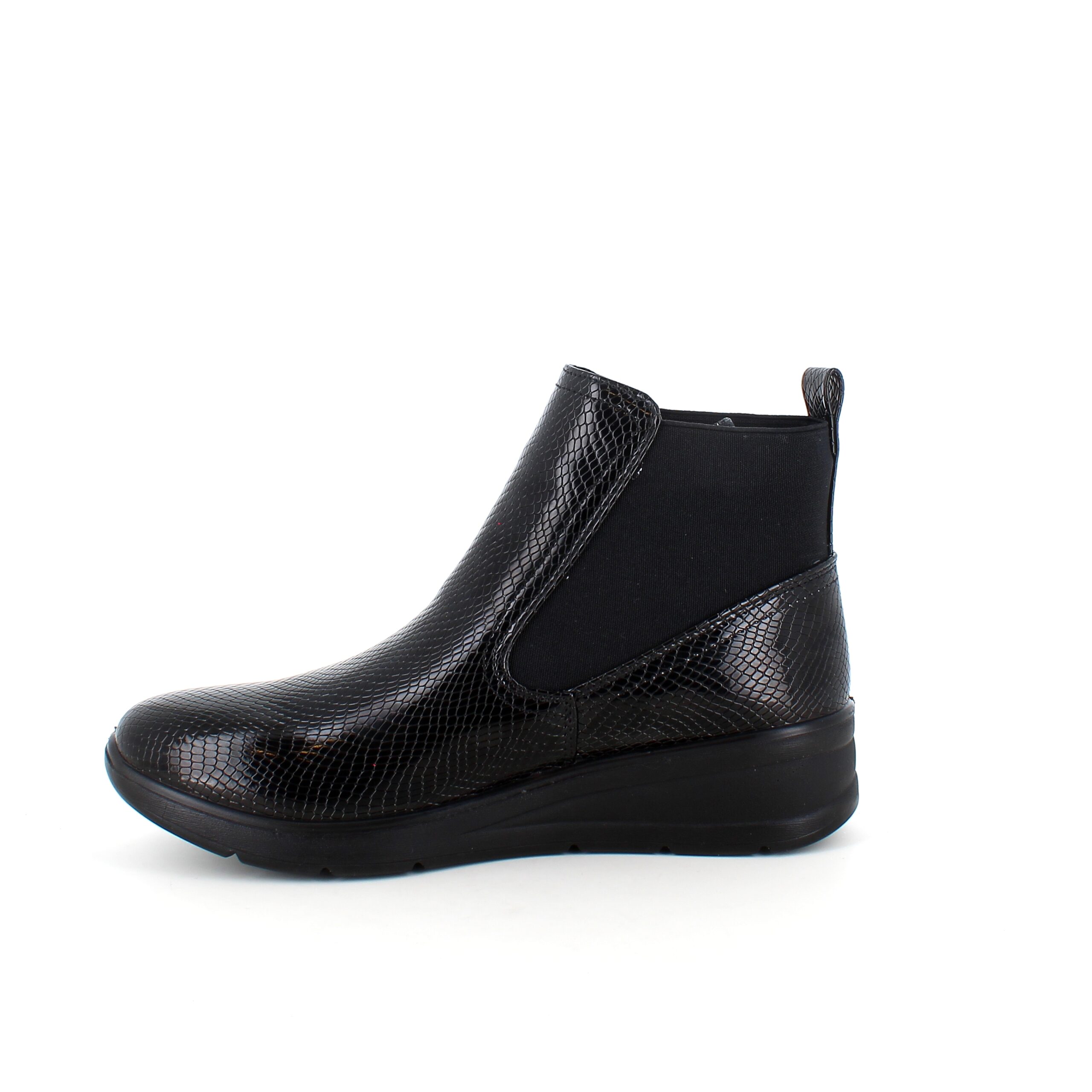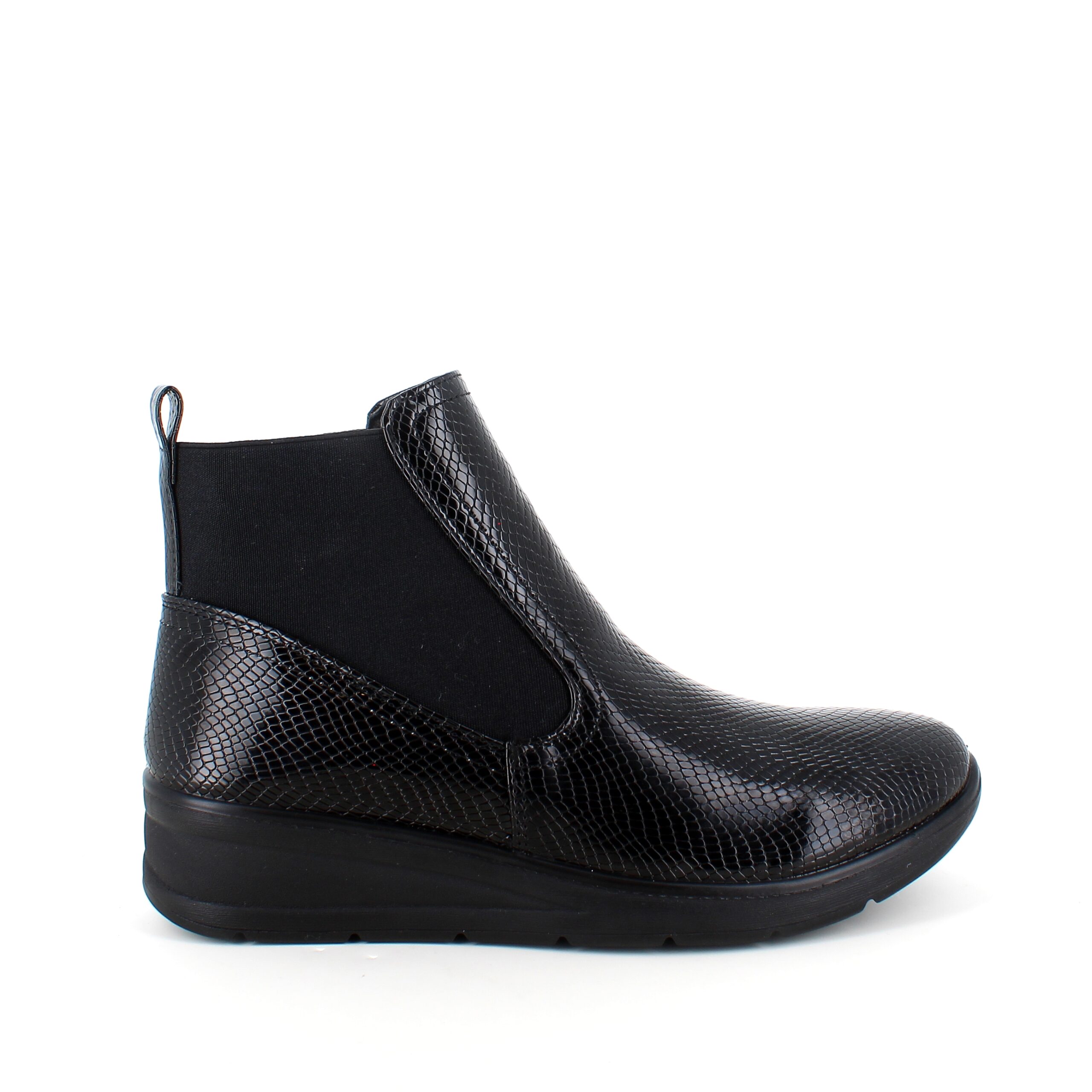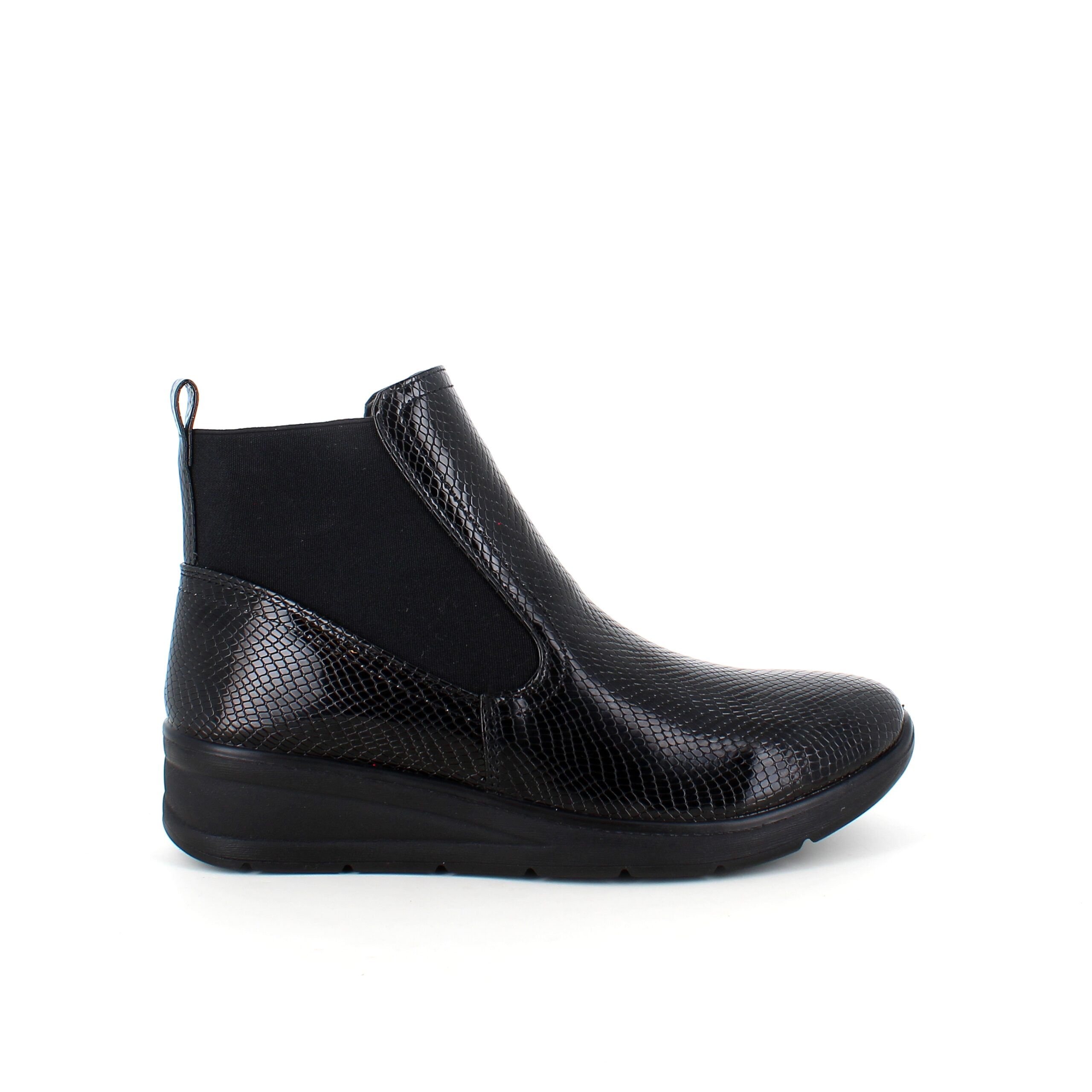 Støvleskaftet har en bred elastisk åbning, hvilket gør det nemt at tage af og på, og det sidder tæt omkring læggen.