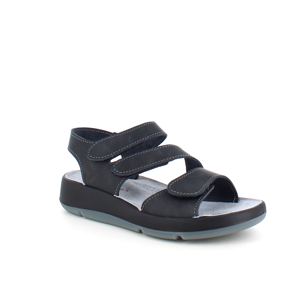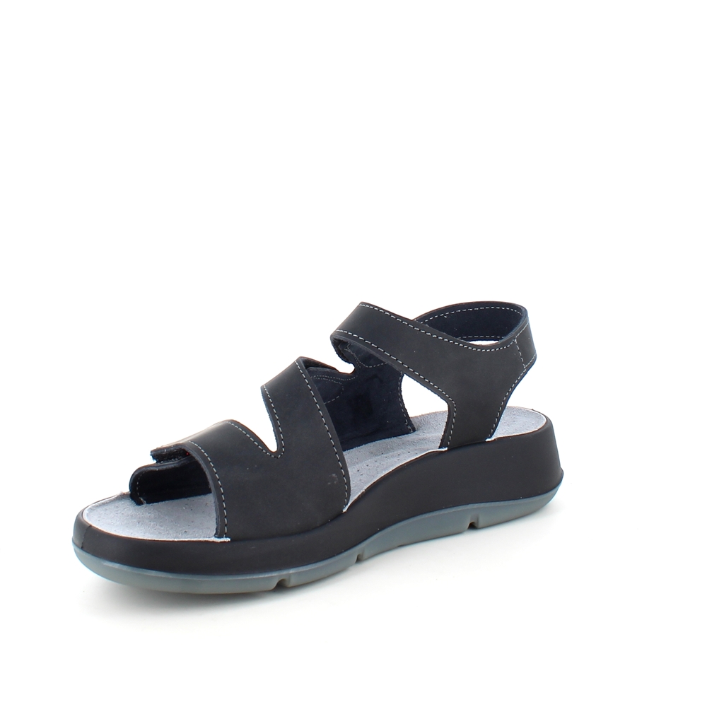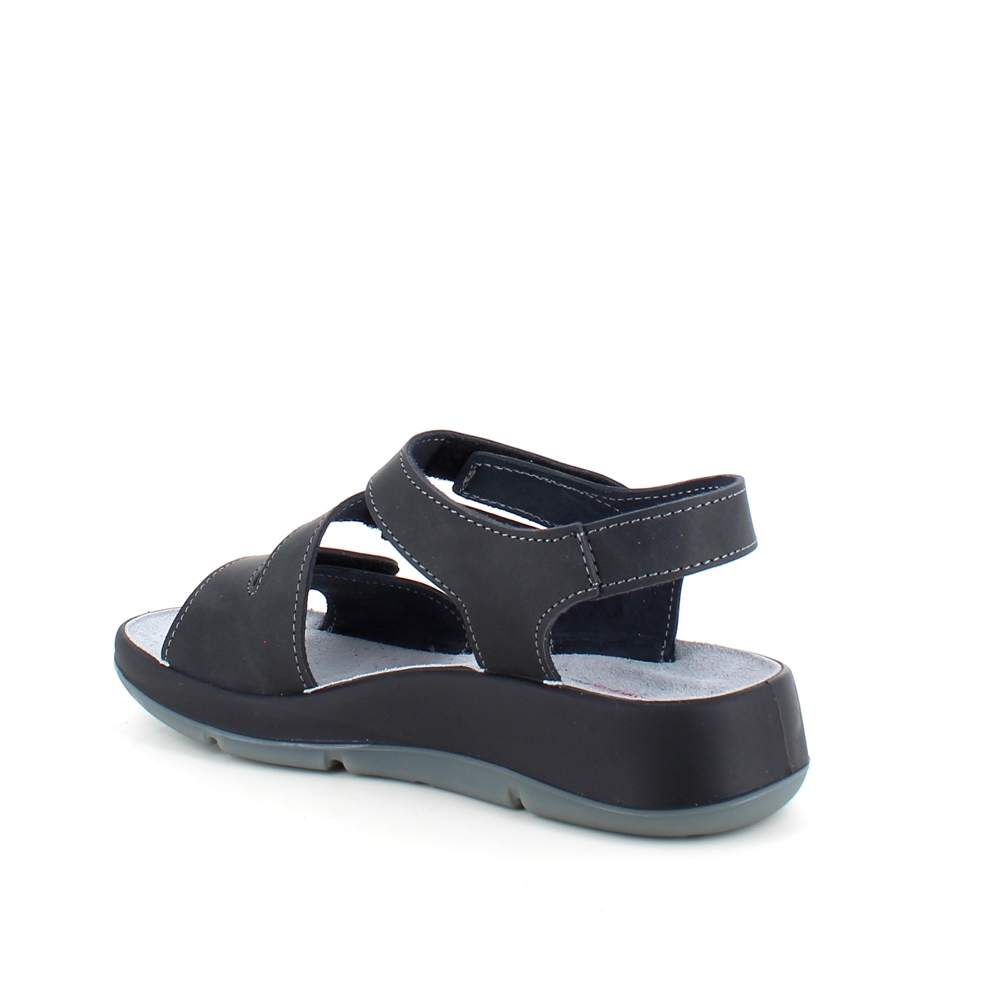 Elegant sort skindsandal med tre justerbare remme så sandalen kan tilpasses præcist til din fod.