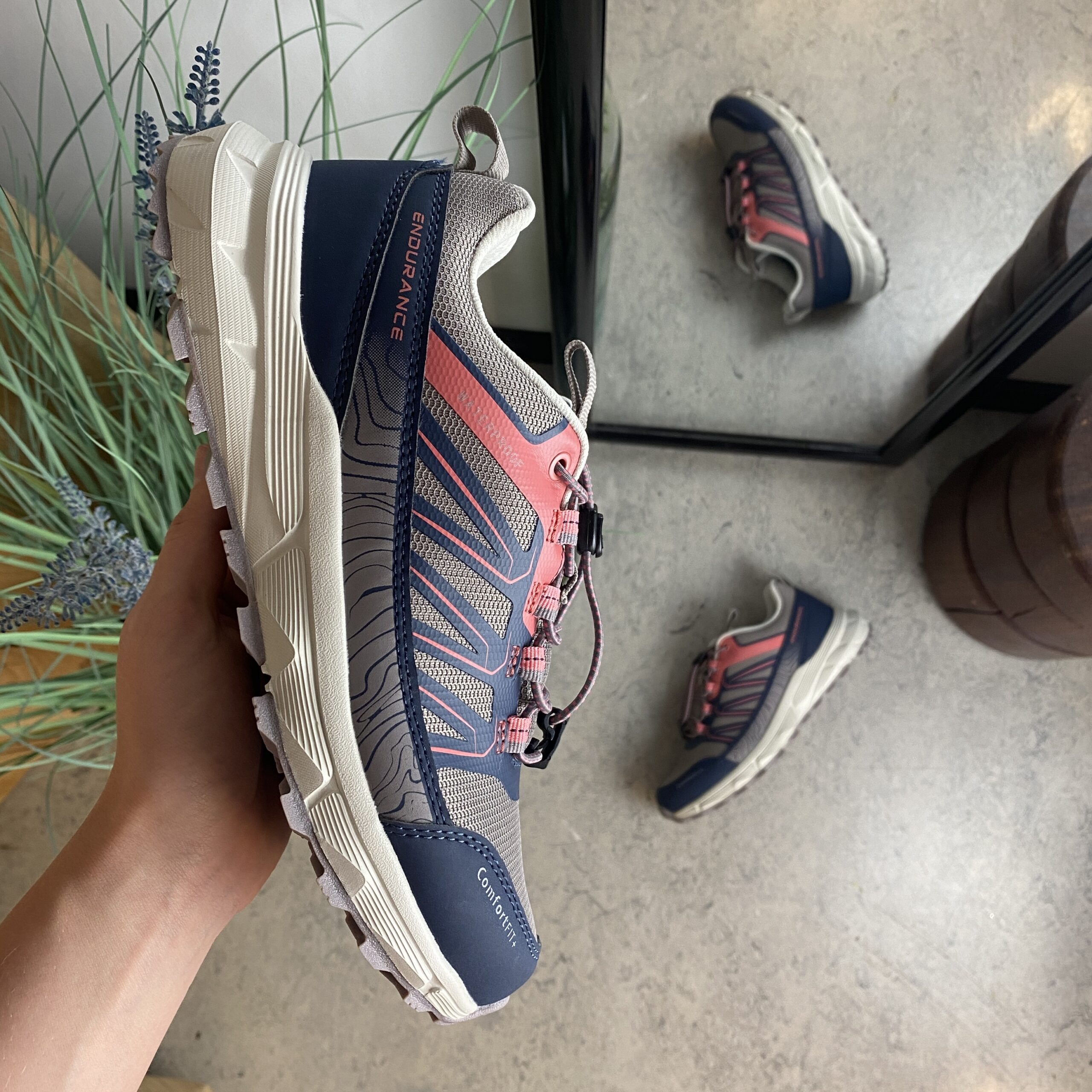Endurance vandtæt sko i lilla med stødabsorberende sål
