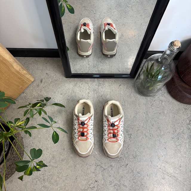 Med elastiksnøren er skoen let at tage af og på.
