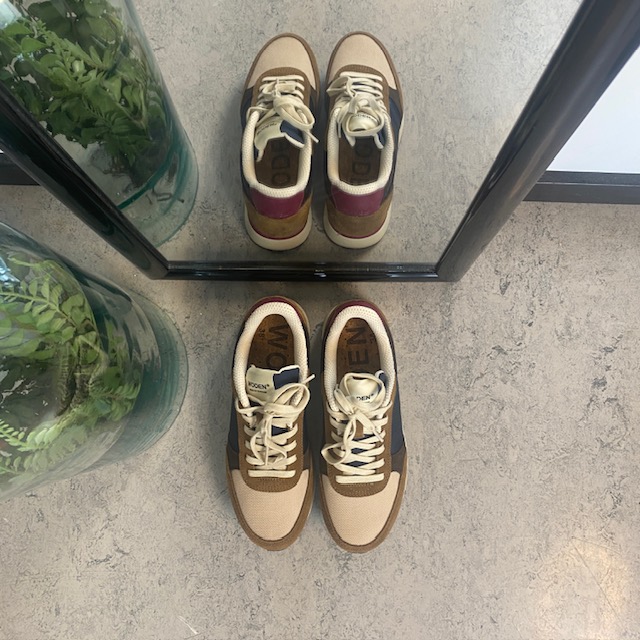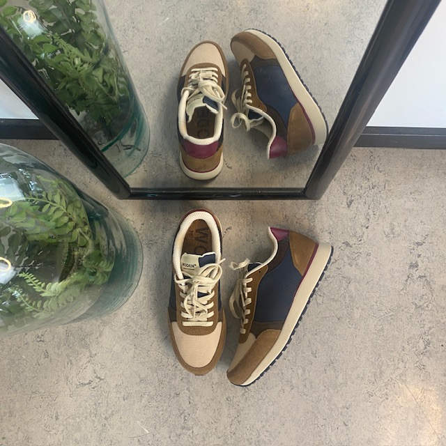 Sko fra Woden i en farvekombination af Blå/beige/brun.