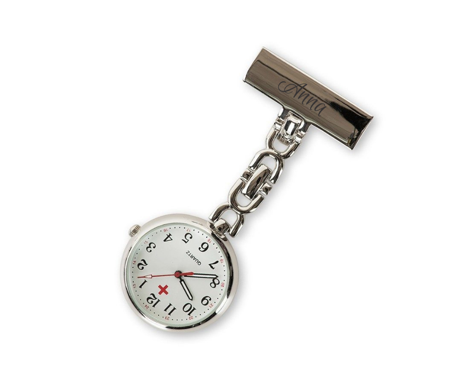 Sygeplejeur med fin kæde- Kæden er smykkelignende. Fåes i tre versioner – en version med hvid urskive, en med selvlysende urskive og en med perlemorsurskive.