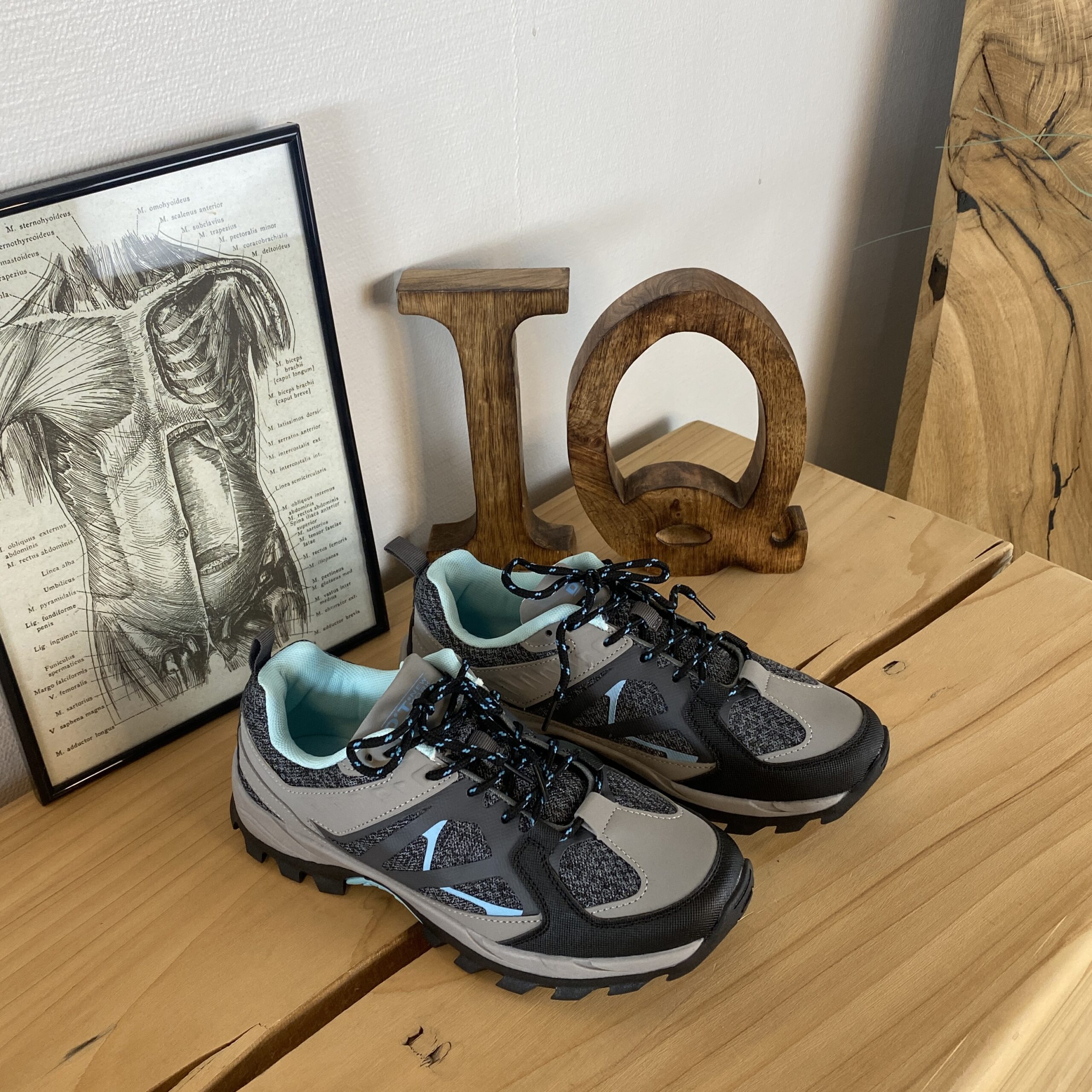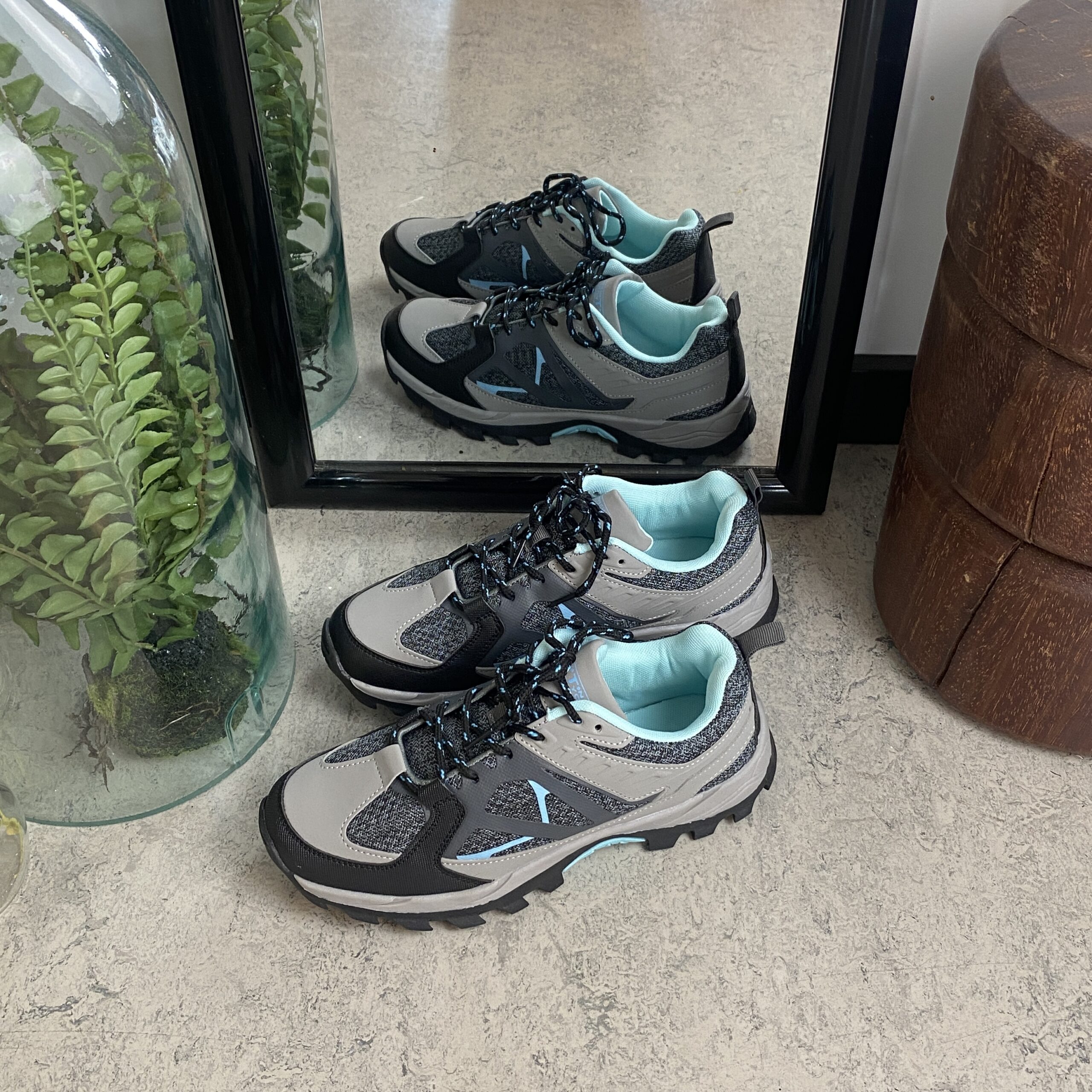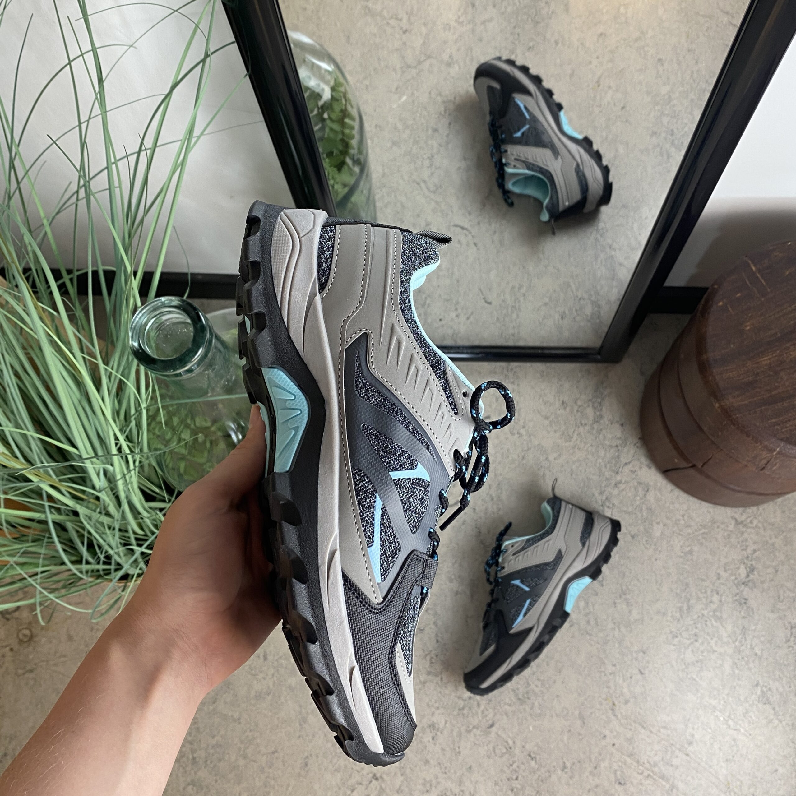 Funktionel vandresko i grå med åndbart mesh og stødabsorberende sål