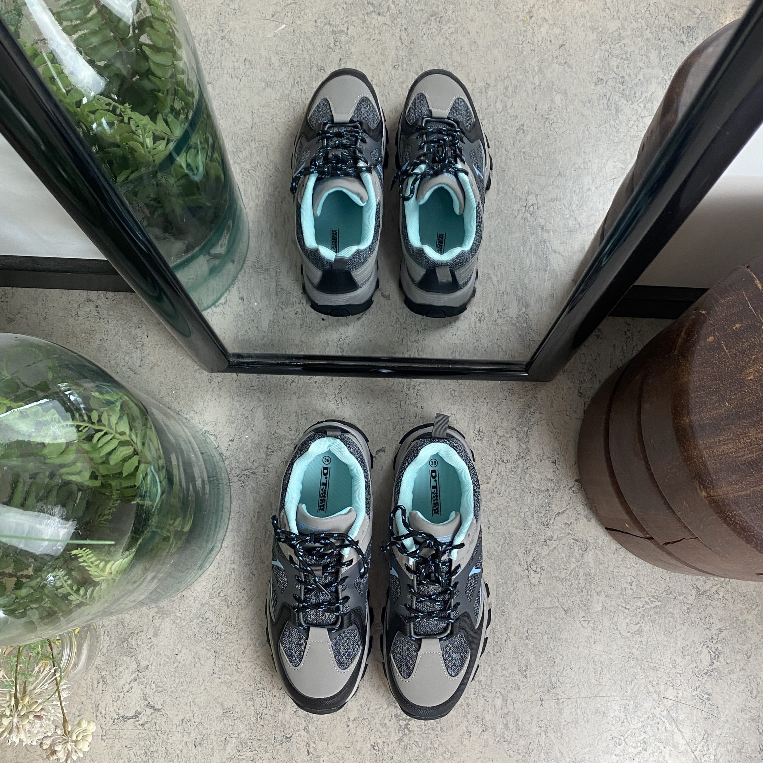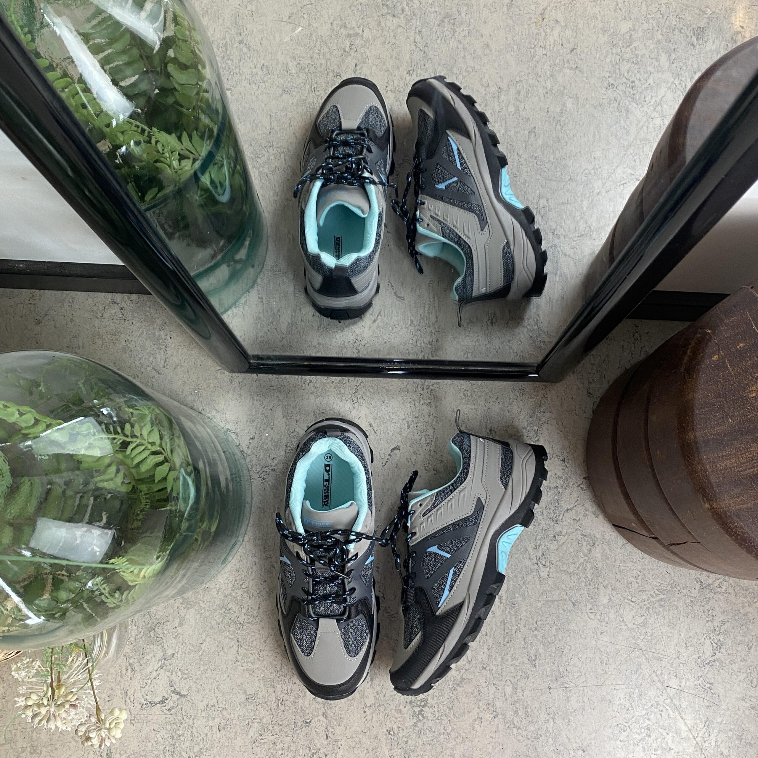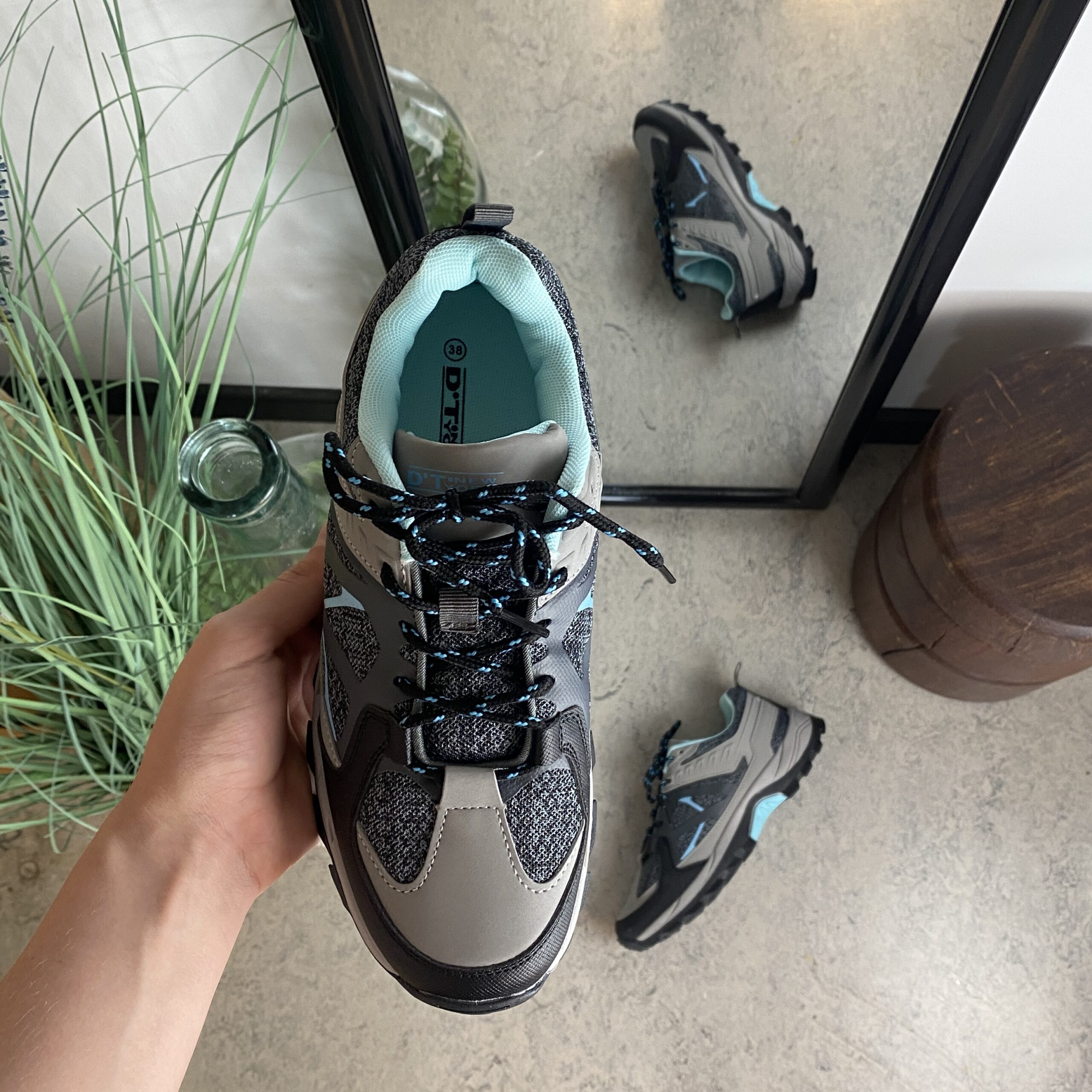 Funktionel vandresko i grå med åndbart mesh og stødabsorberende sål