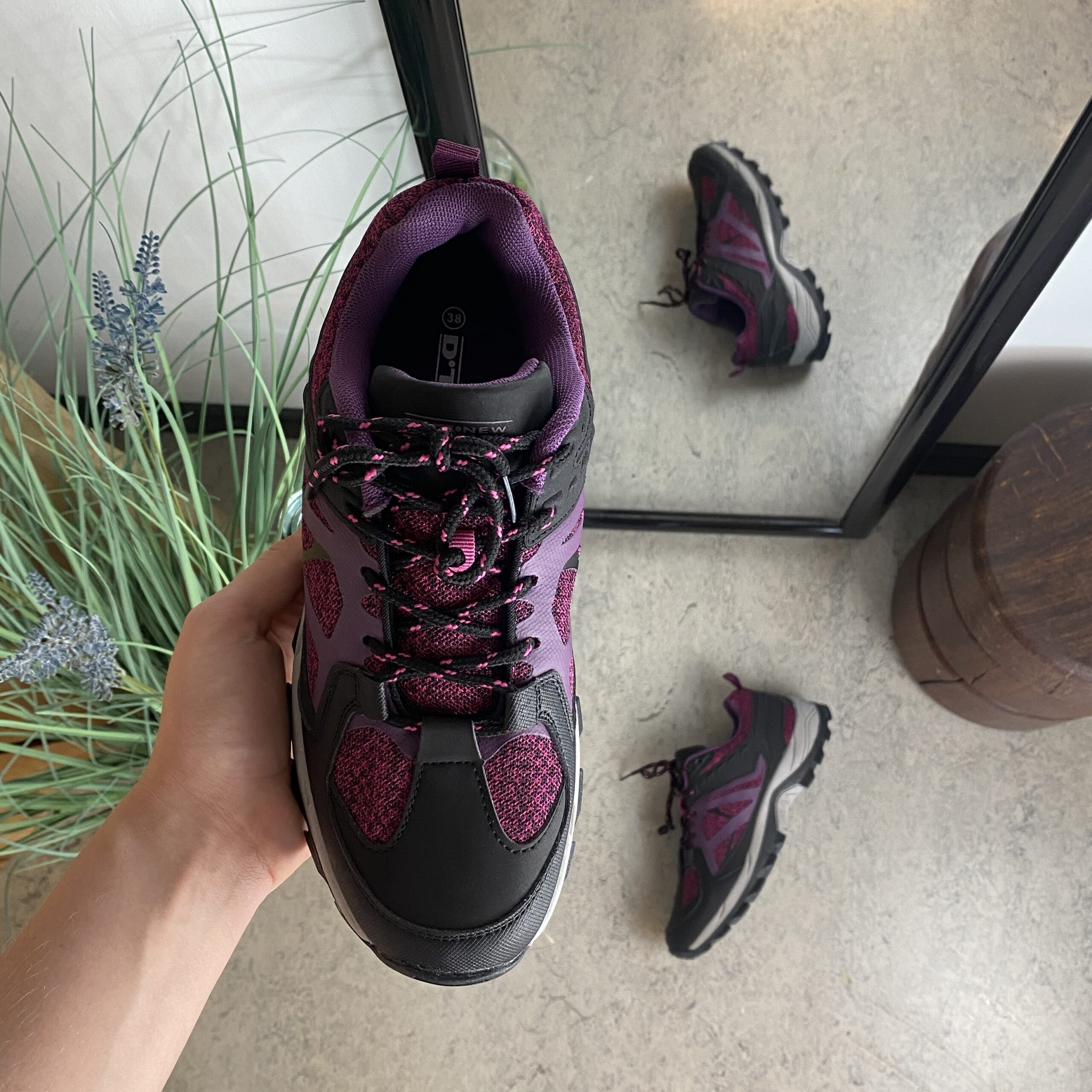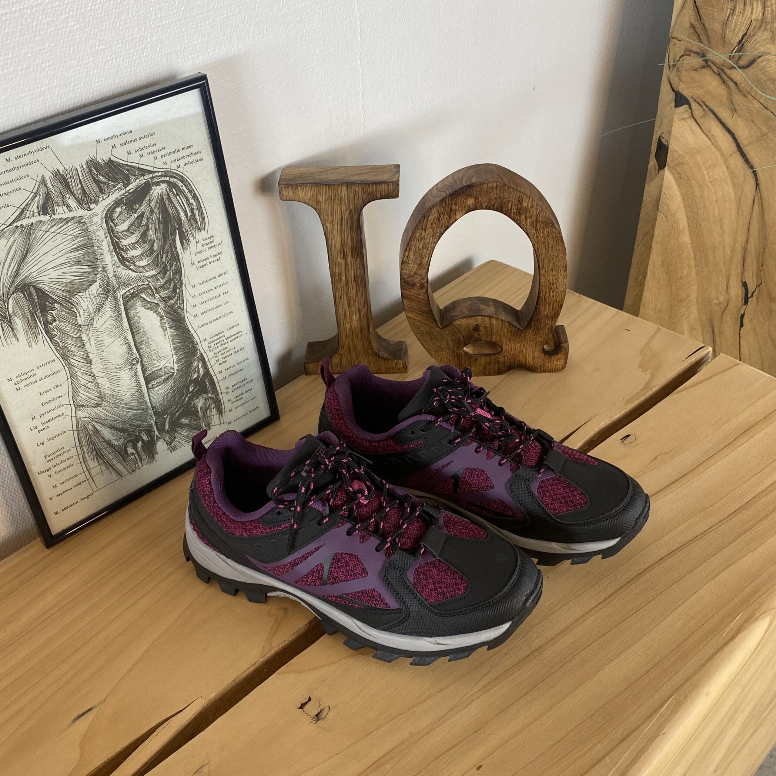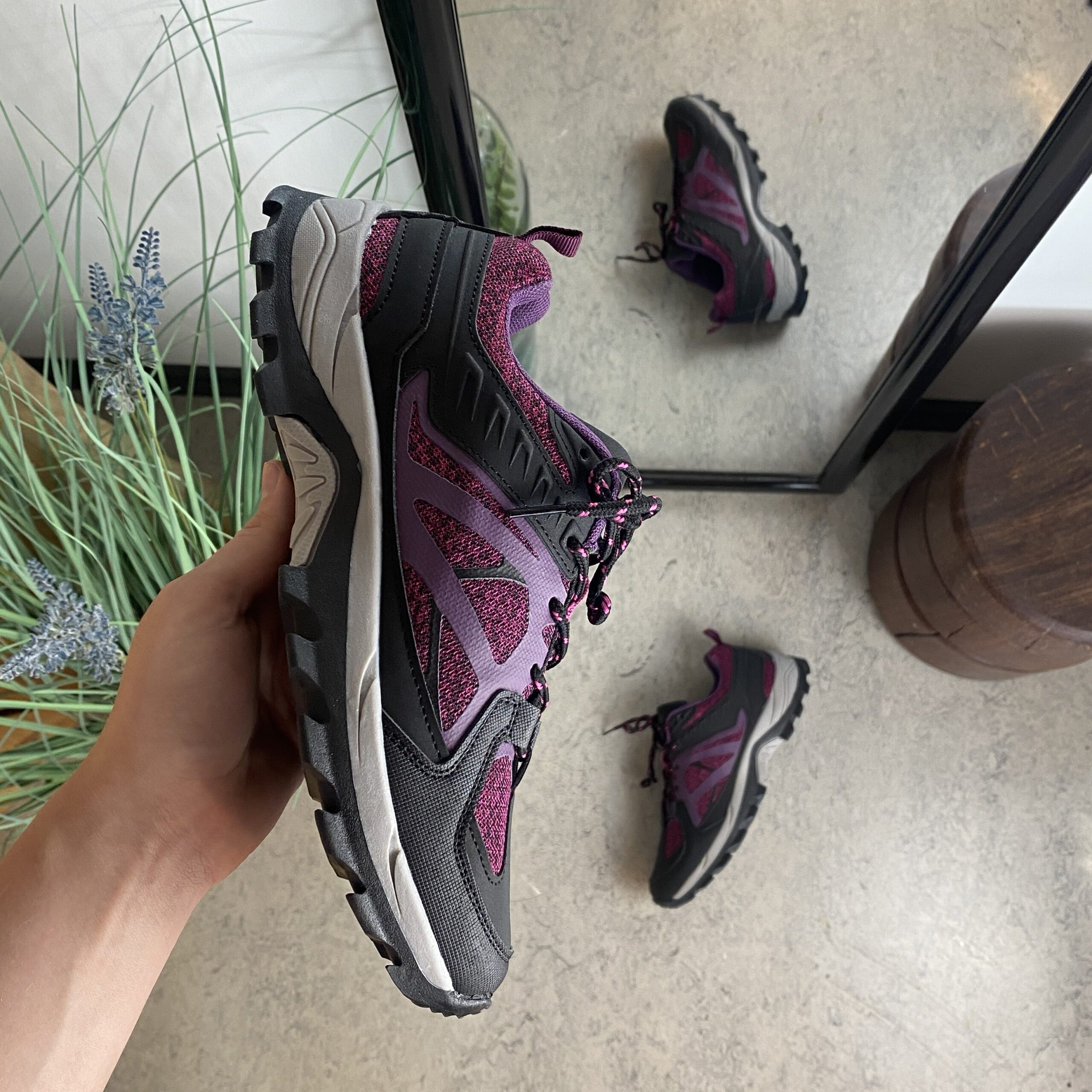 Funktionel vandresko i lilla med åndbart mesh og stødabsorberende sål