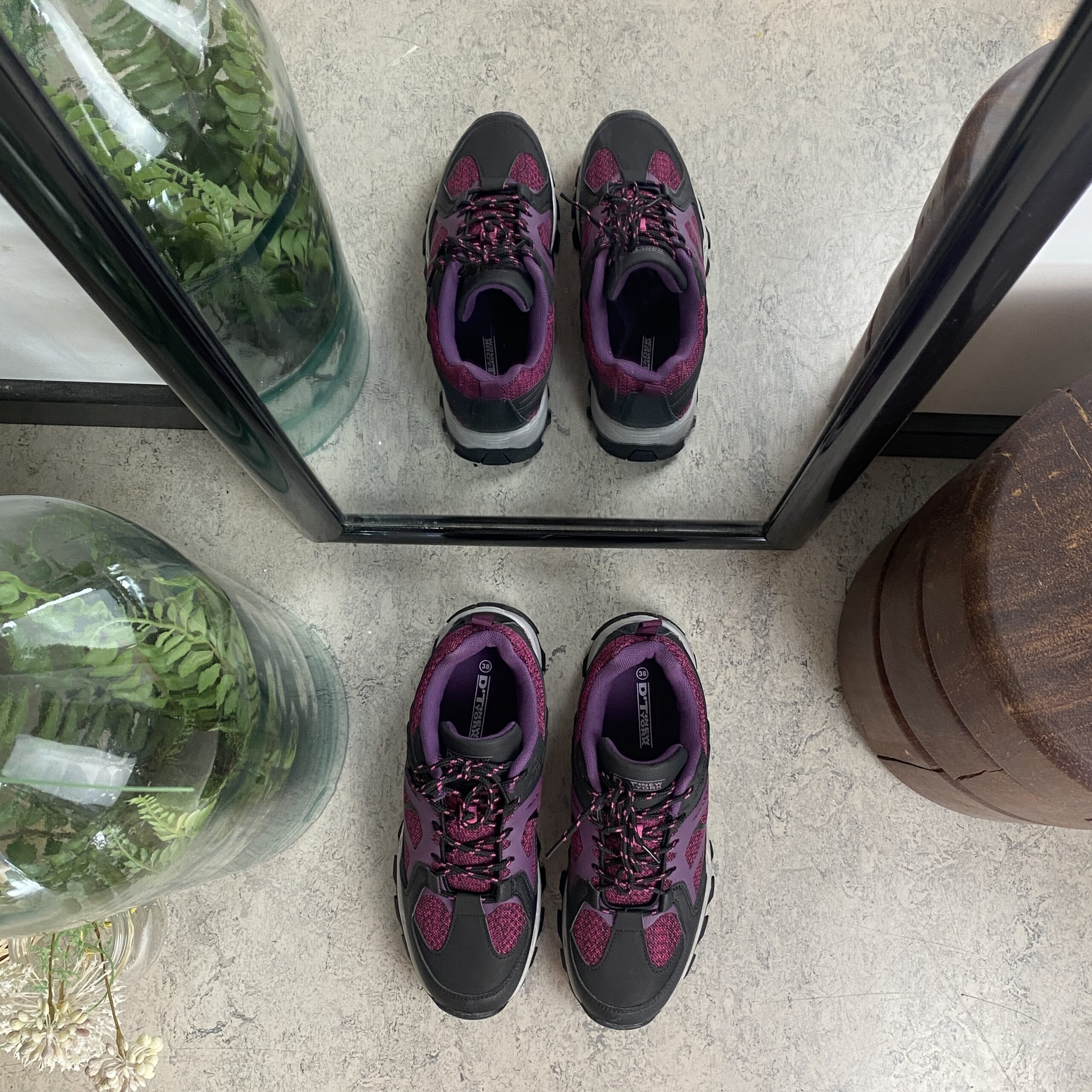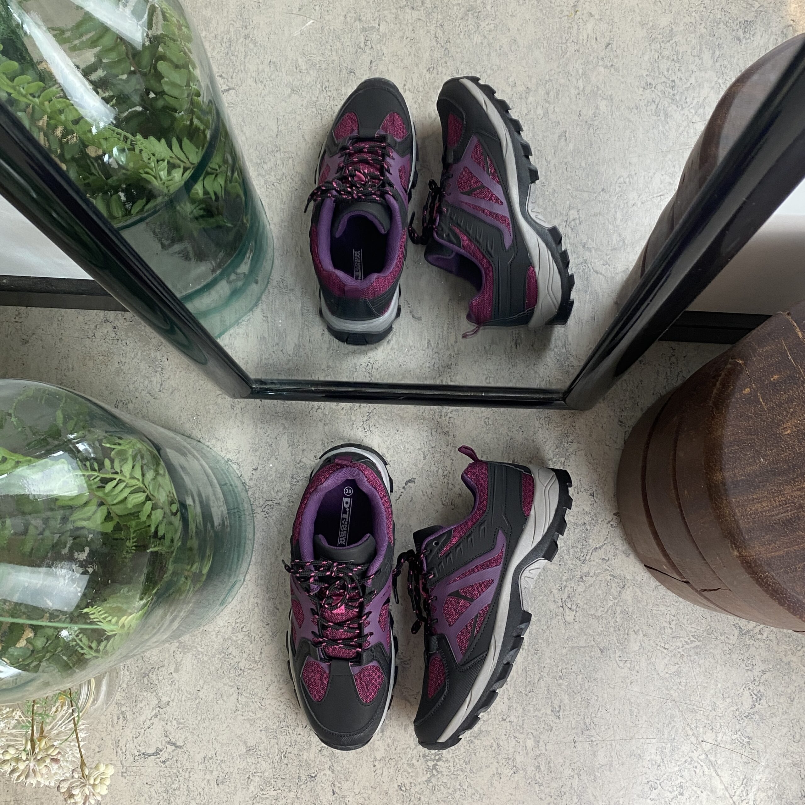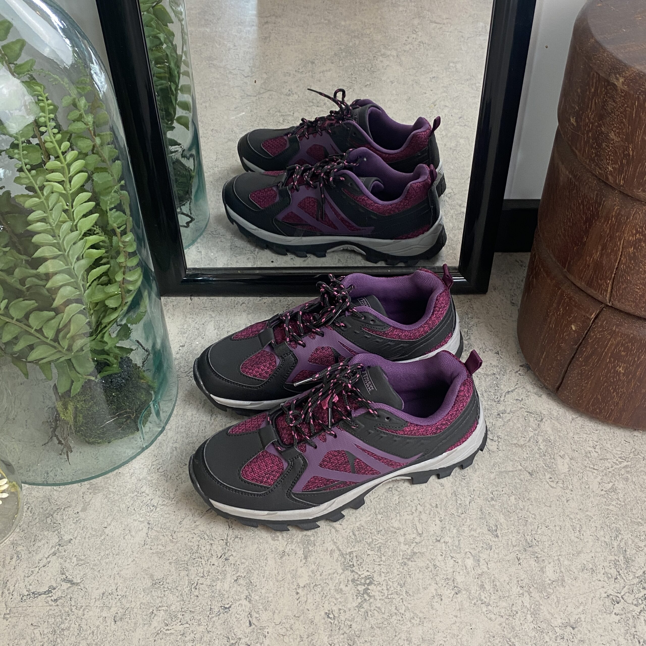 Funktionel vandresko i lilla med åndbart mesh og stødabsorberende sål