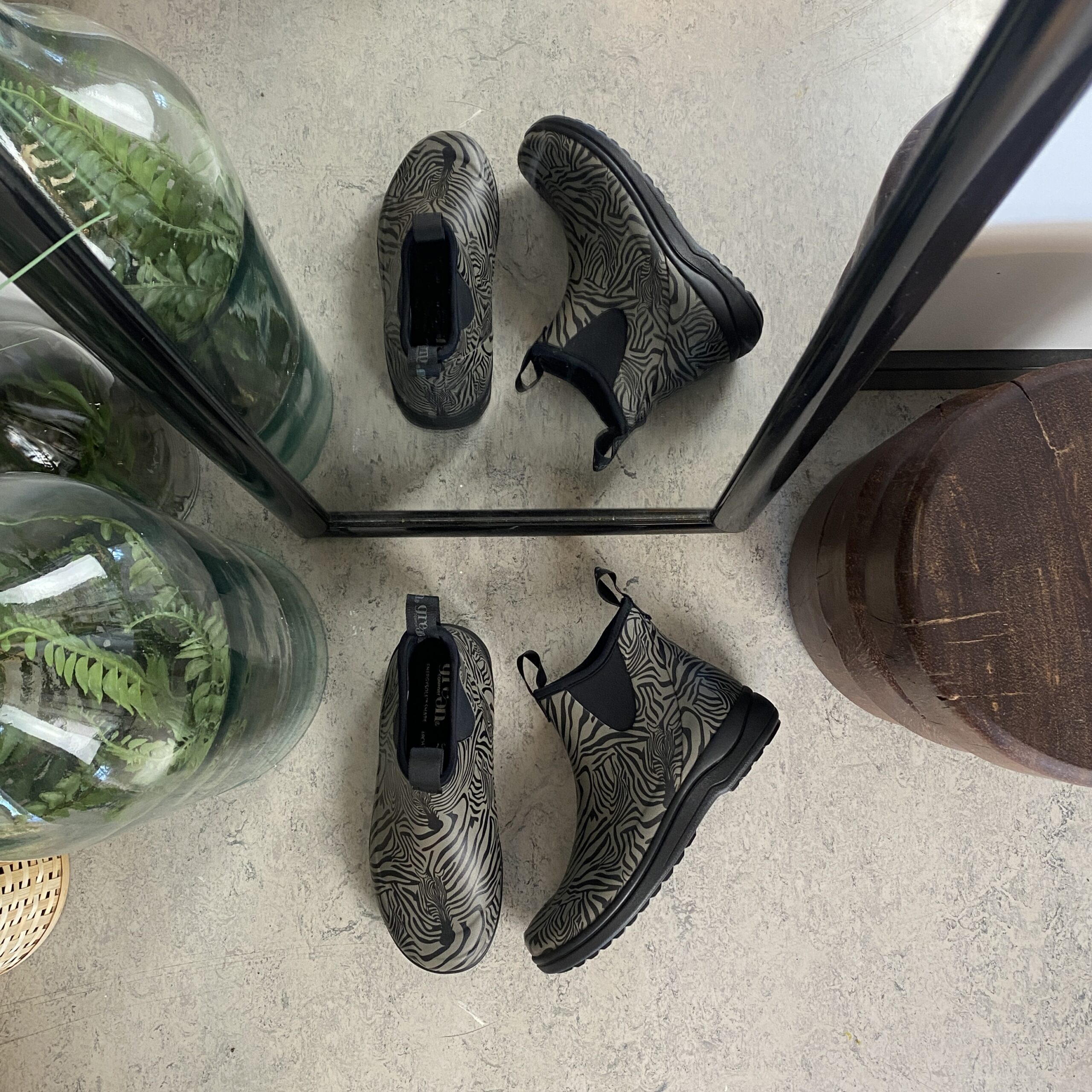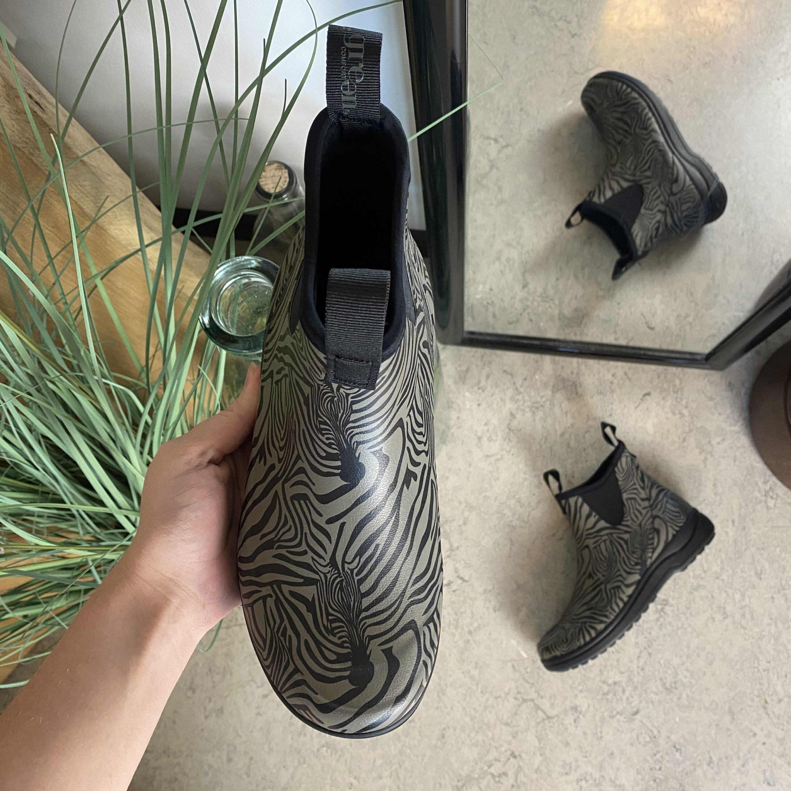 Green Comfort gummistøvle i zebraprint med svangstøtte