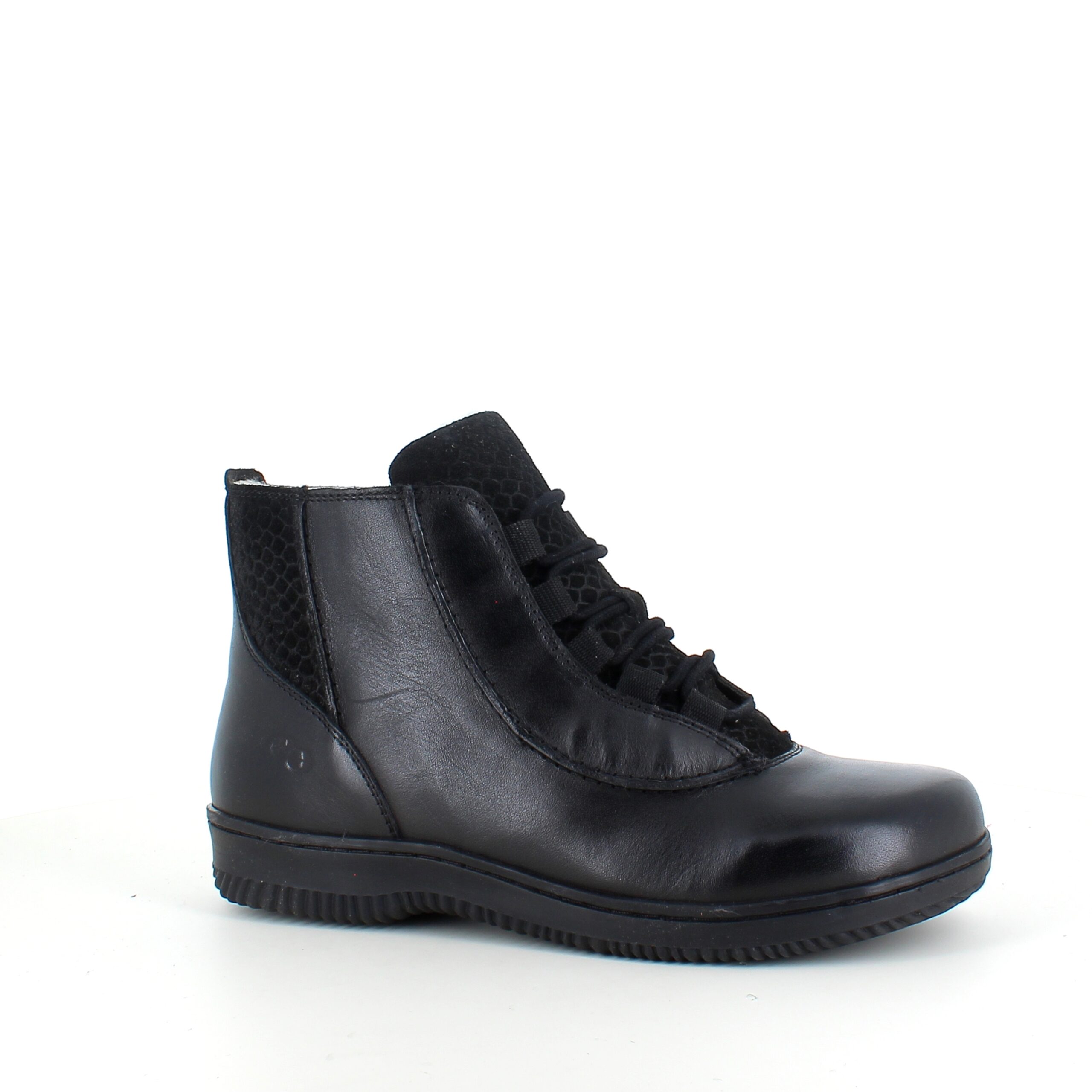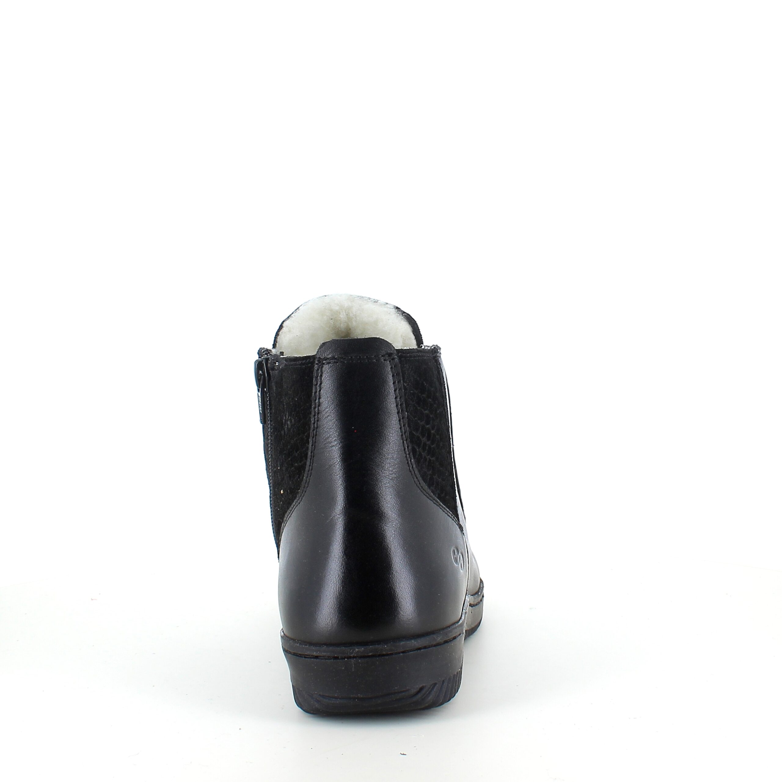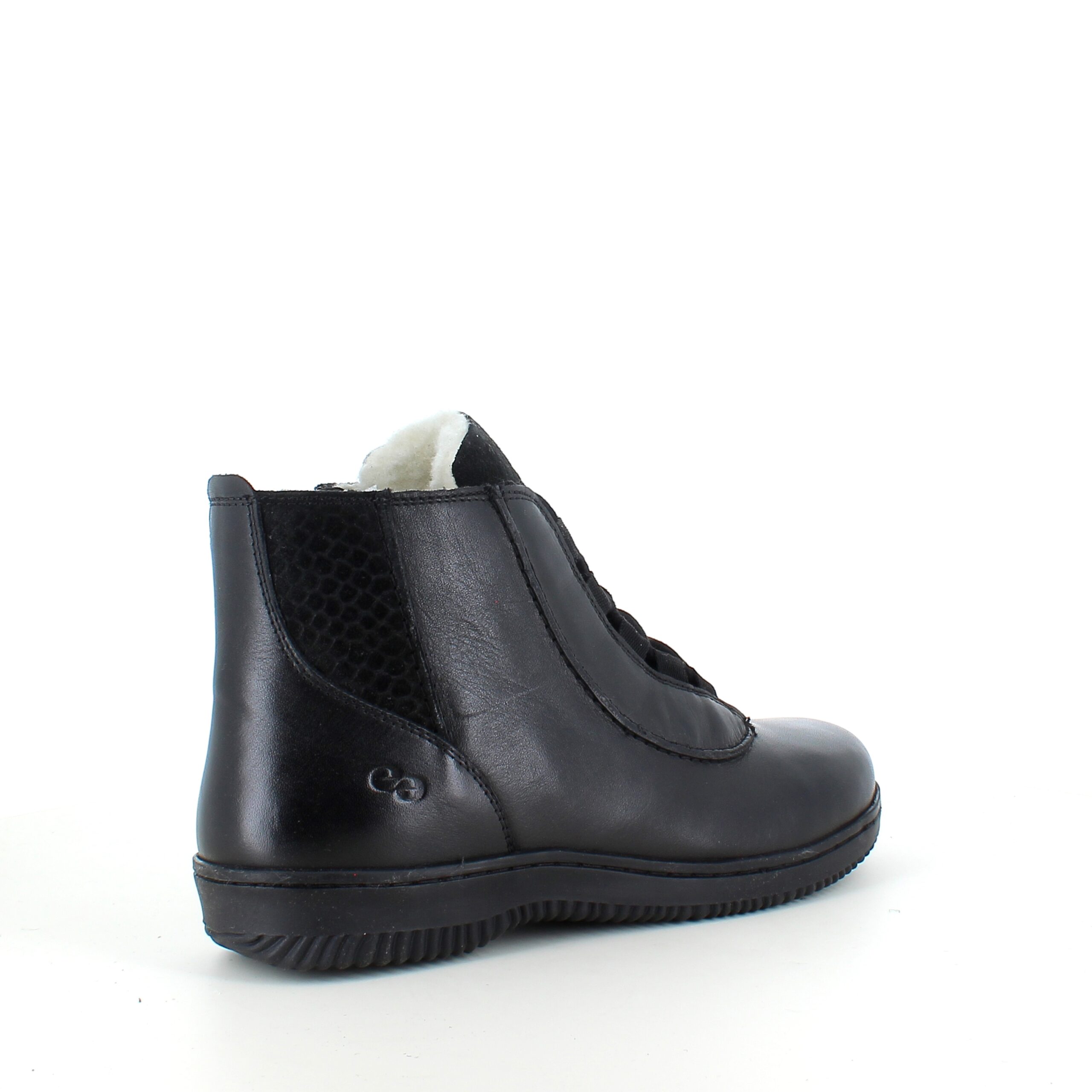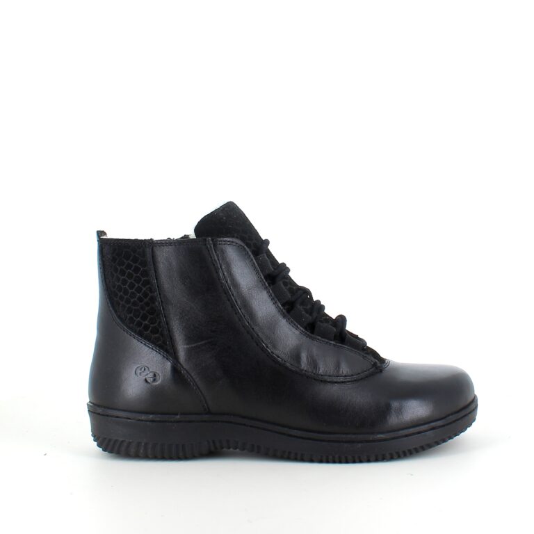 Green Comfort kort læderstøvle i sort med uldfoer