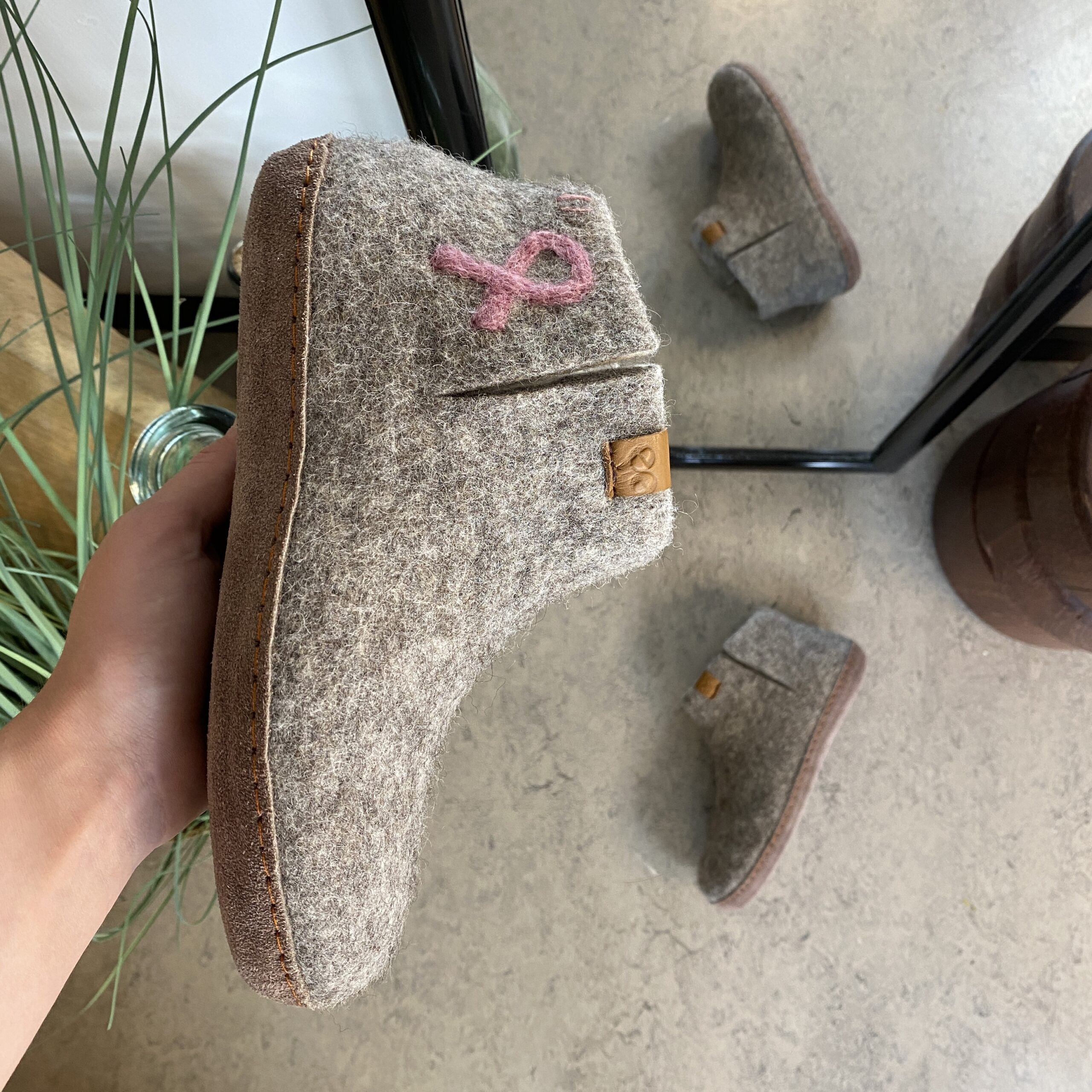 Oplev vores limited-edition uldhjemmesko, skabt i samarbejde med Støt Brysterne og Green Comfort, hvor hver eneste sko er håndbroderet med den velkendte lyserøde sløjfe på højre yderside. Når du køber et par uldhjemmesko fra denne kollektion, går 50 kr. direkte til Støt Brysterne, så du tager små skridt med stor betydning.