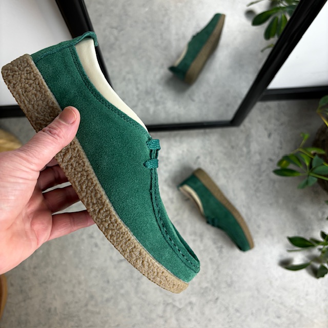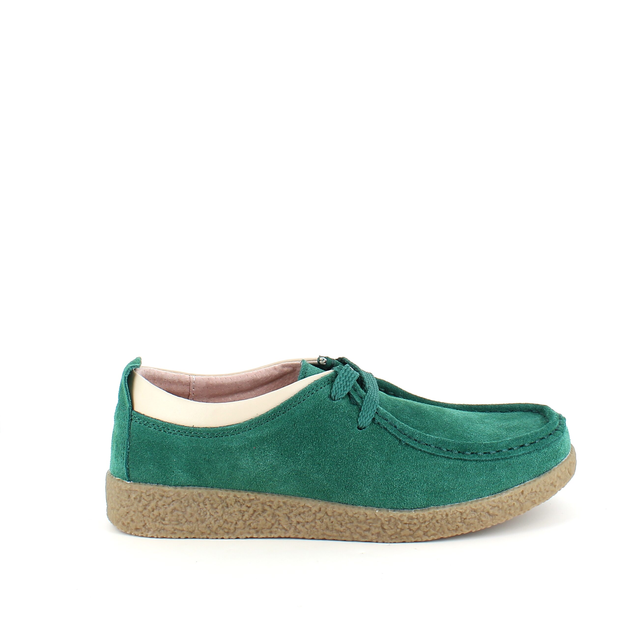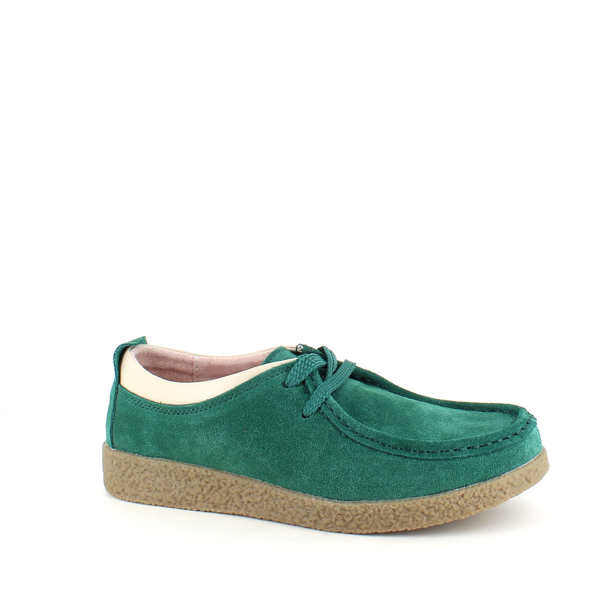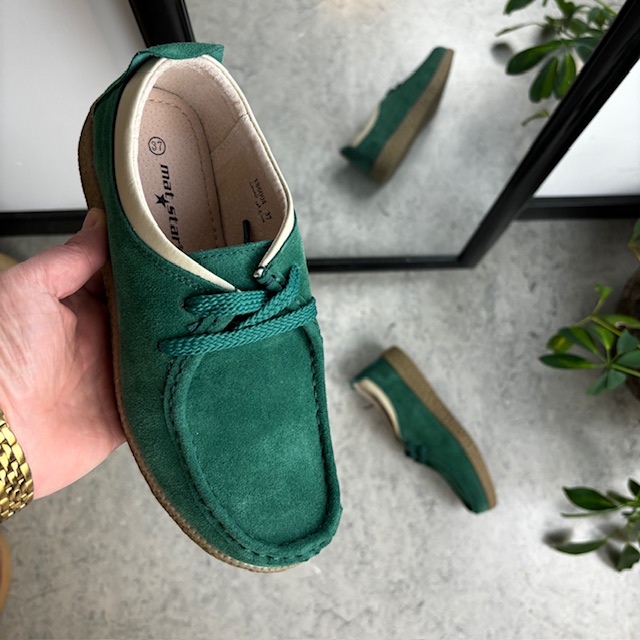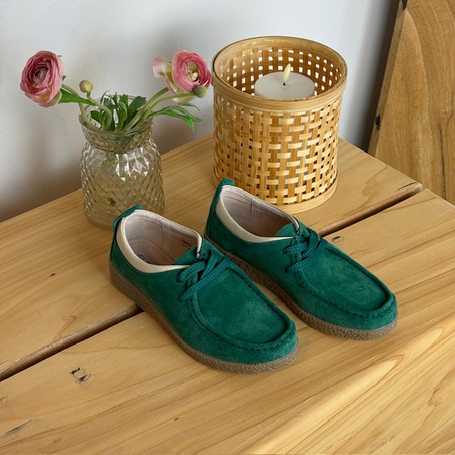 Grøn ruskindssko med rågummisål