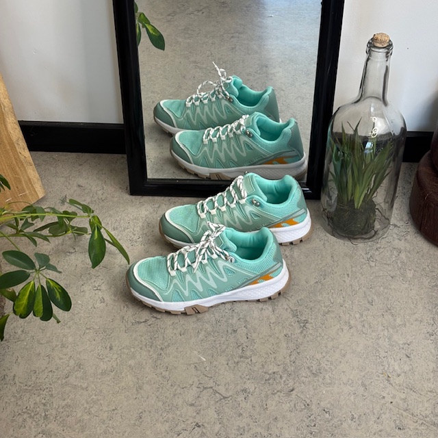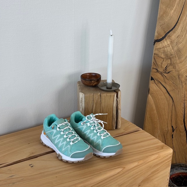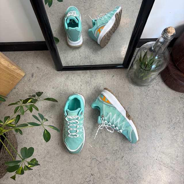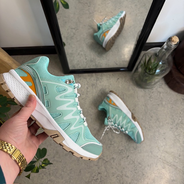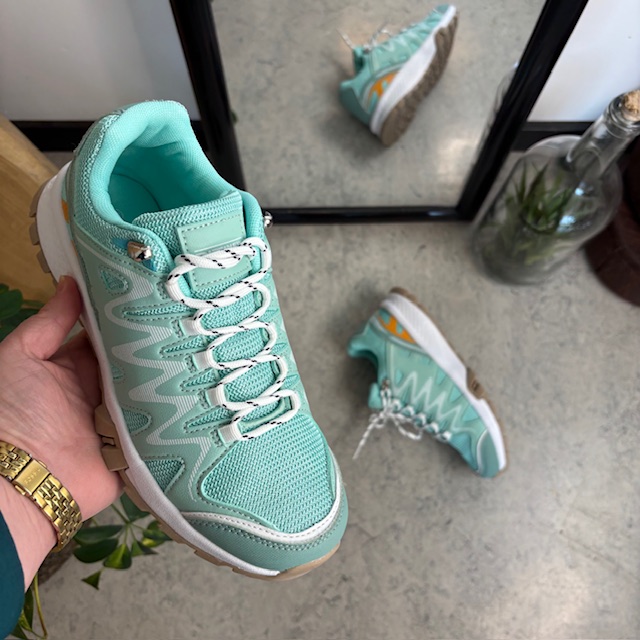 Disse lette og komfortable sko kombinerer et stilrent, grønt design med smukke, hvide detaljer, der giver et friskt og feminint udtryk.