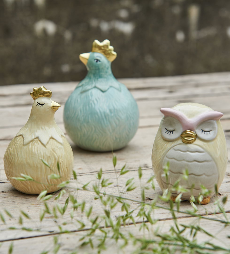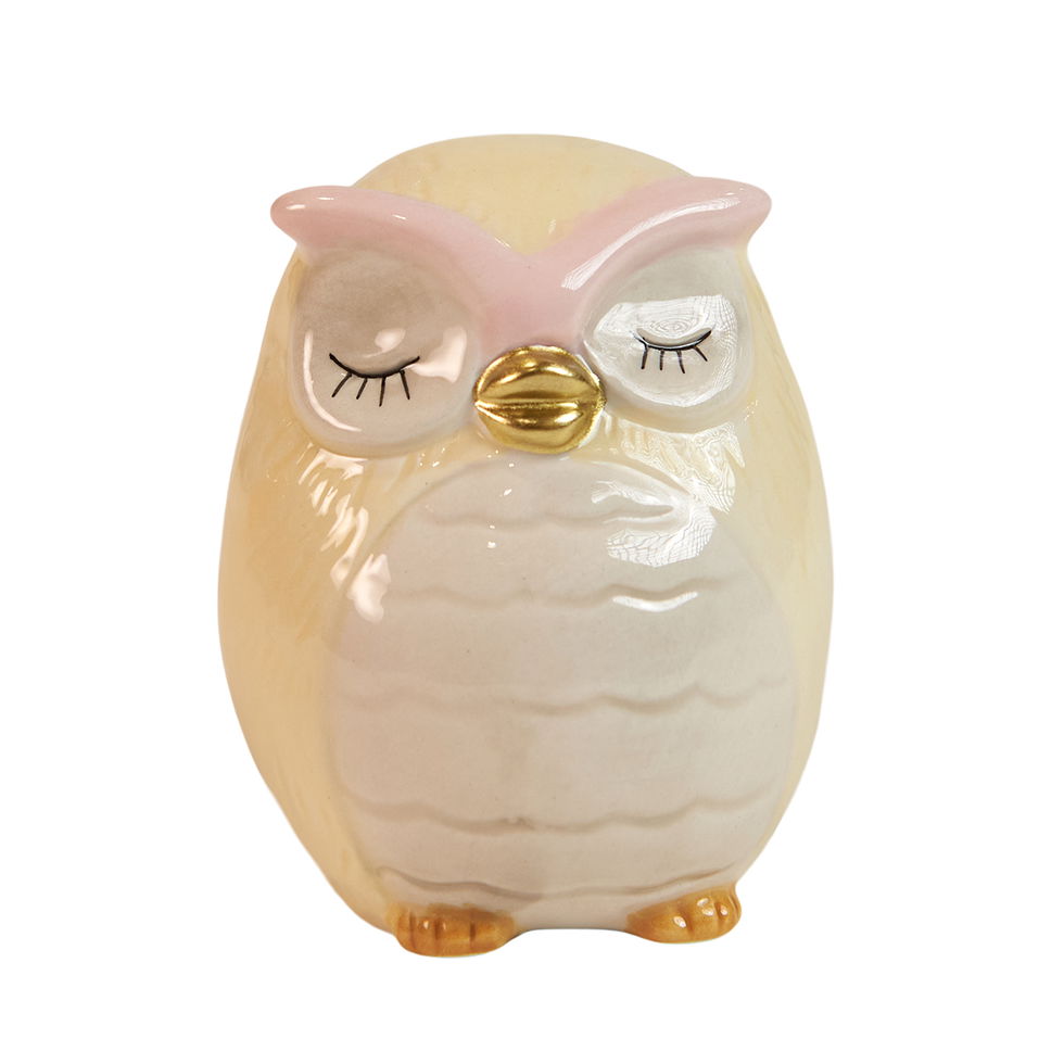 Håndmalet ugle i keramik – Smukt design i gul og rosa