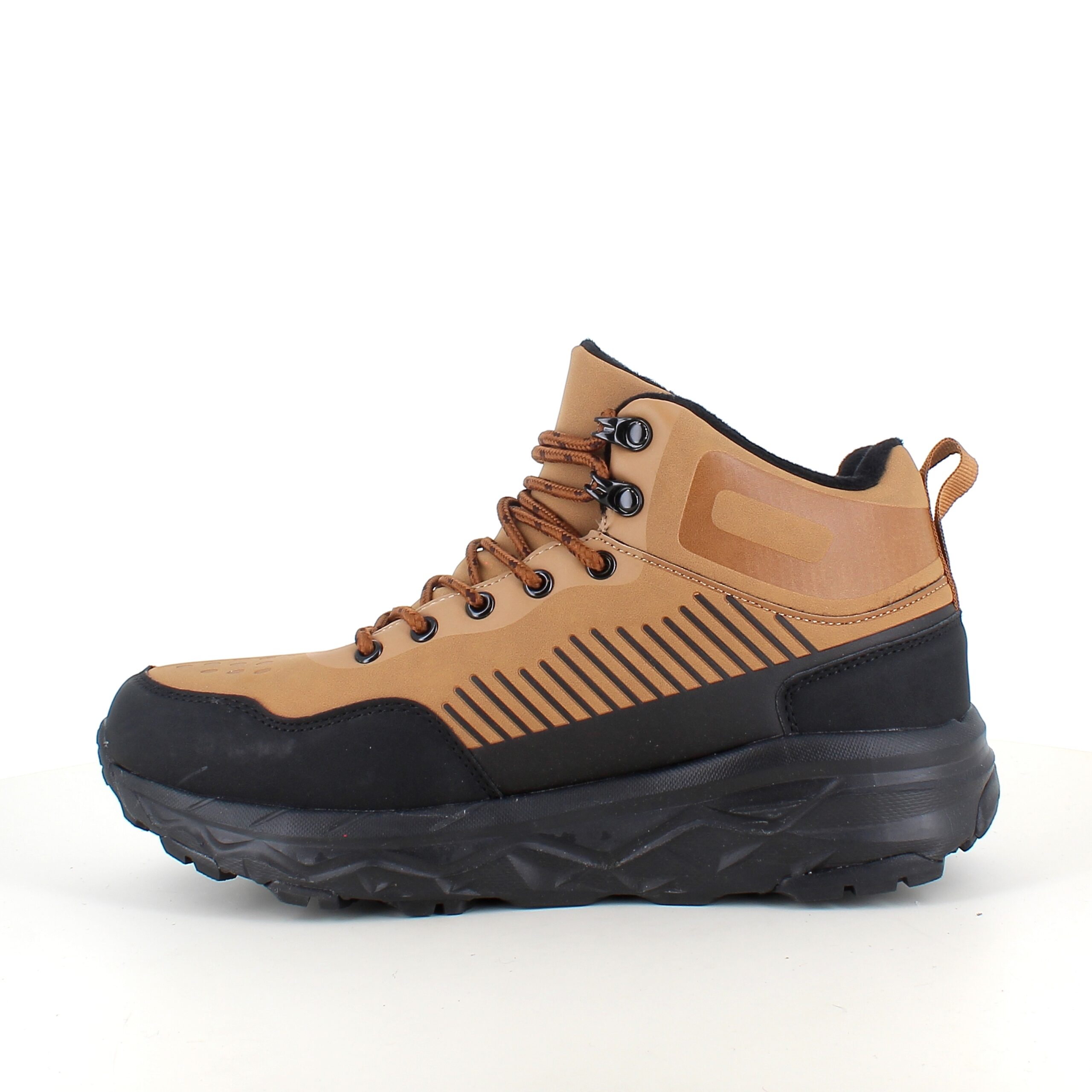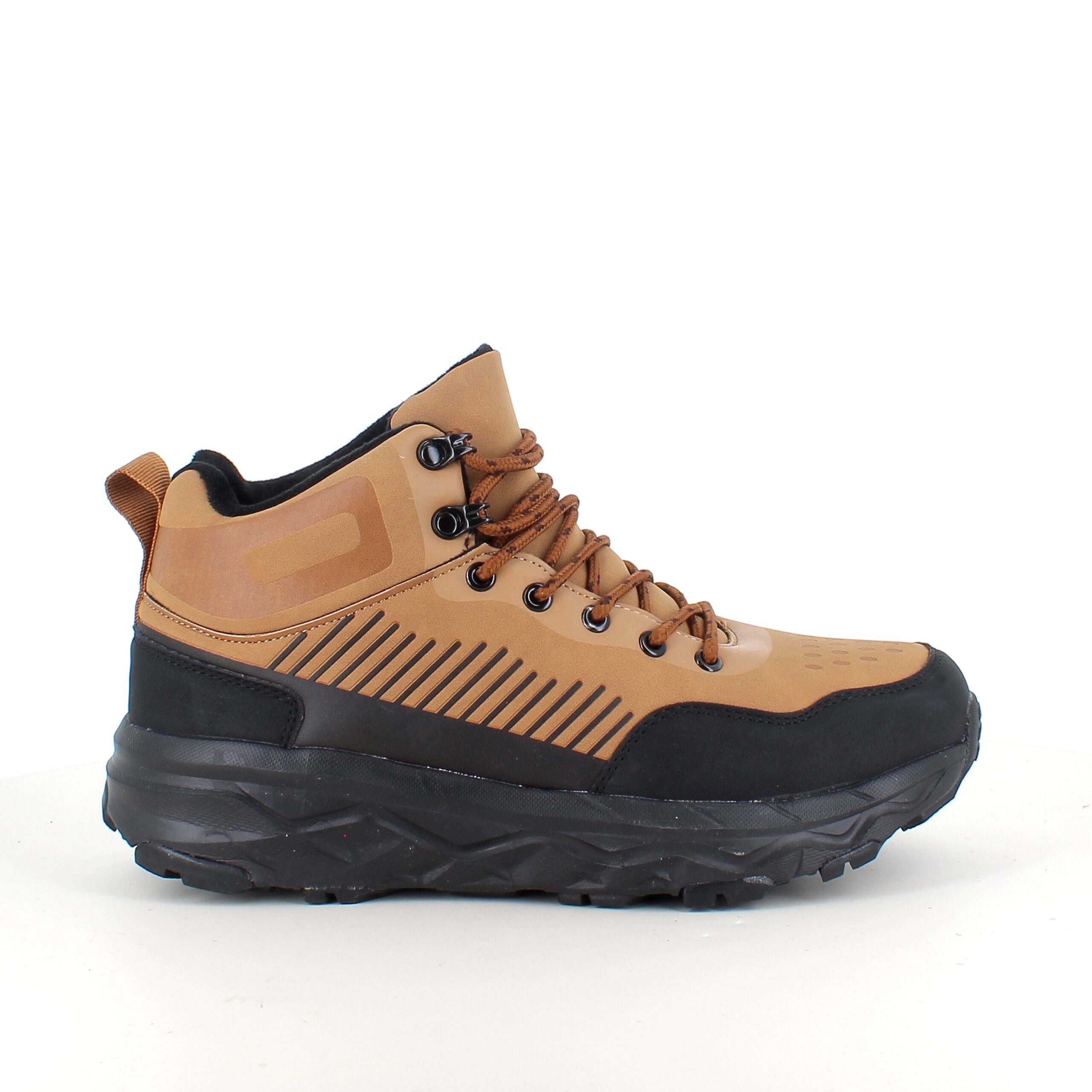 Stilfuld og praktisk herre ankelstøvle i lysebrun PU med moderne detaljer og kontrastfarvet sål.
