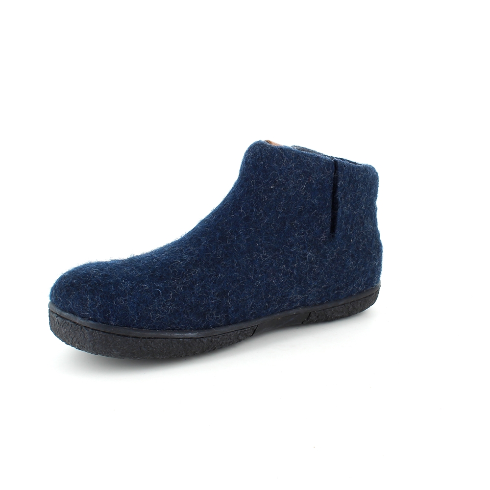 Høj blå hjemmesko i uld med skridhæmmende såler fra Green Comfort