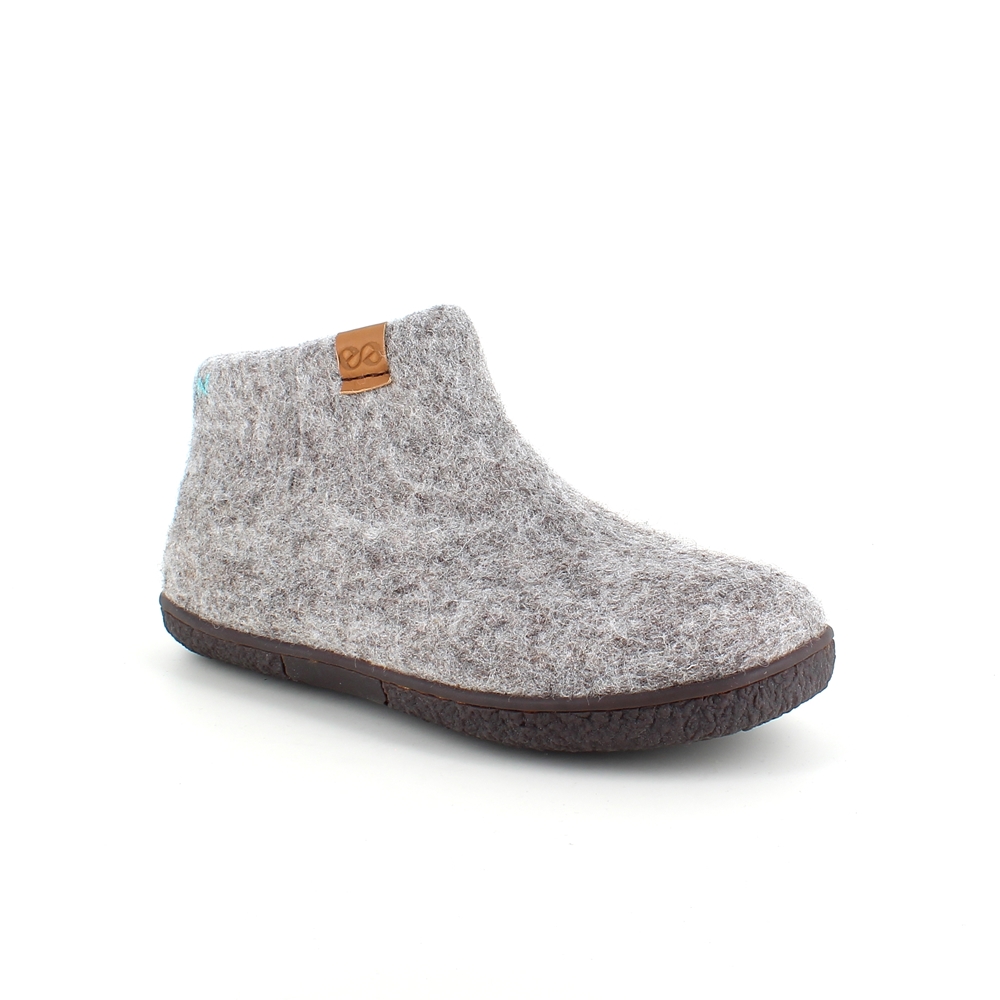 Høj lysegrå hjemmesko i uld med skridhæmmende såler fra Green Comfort