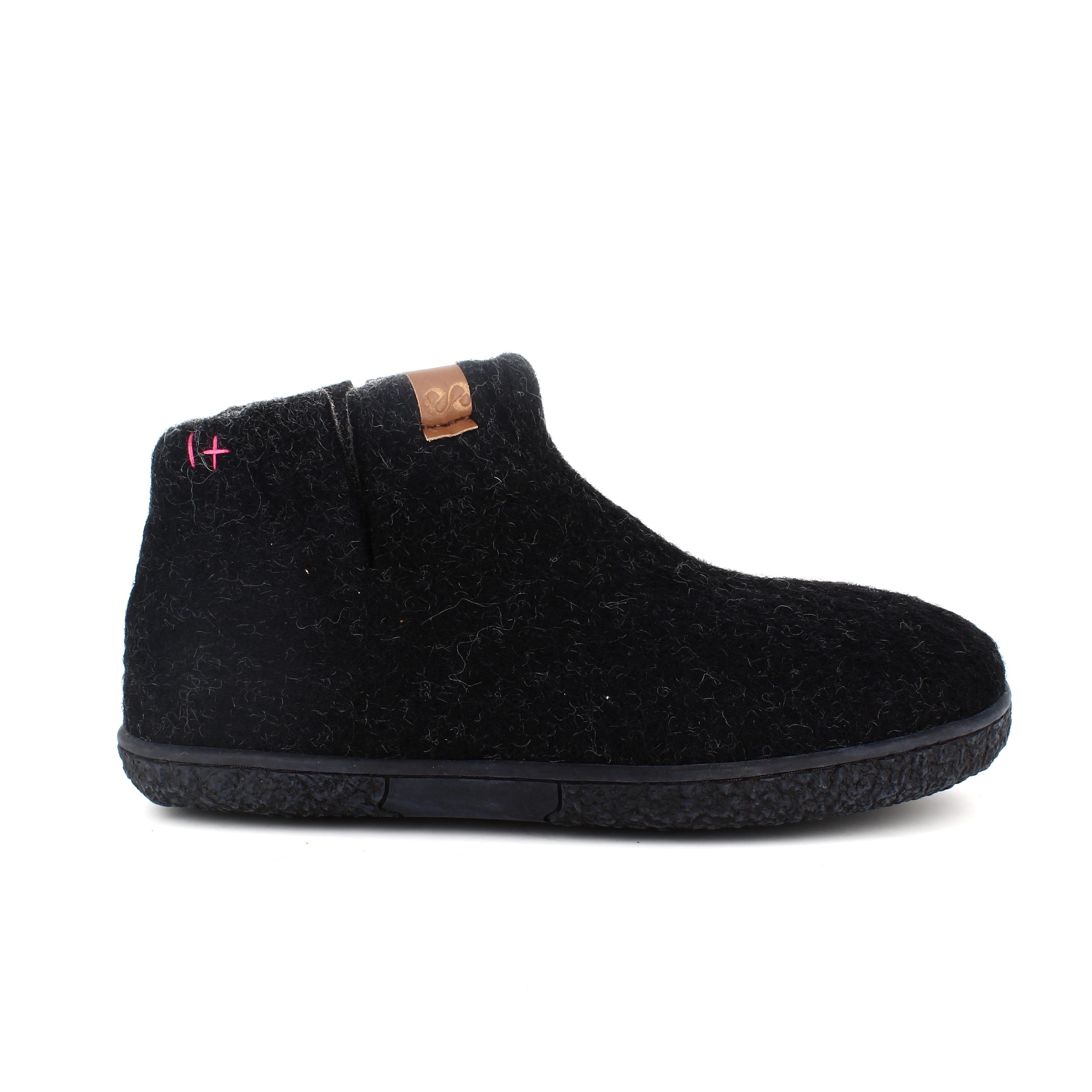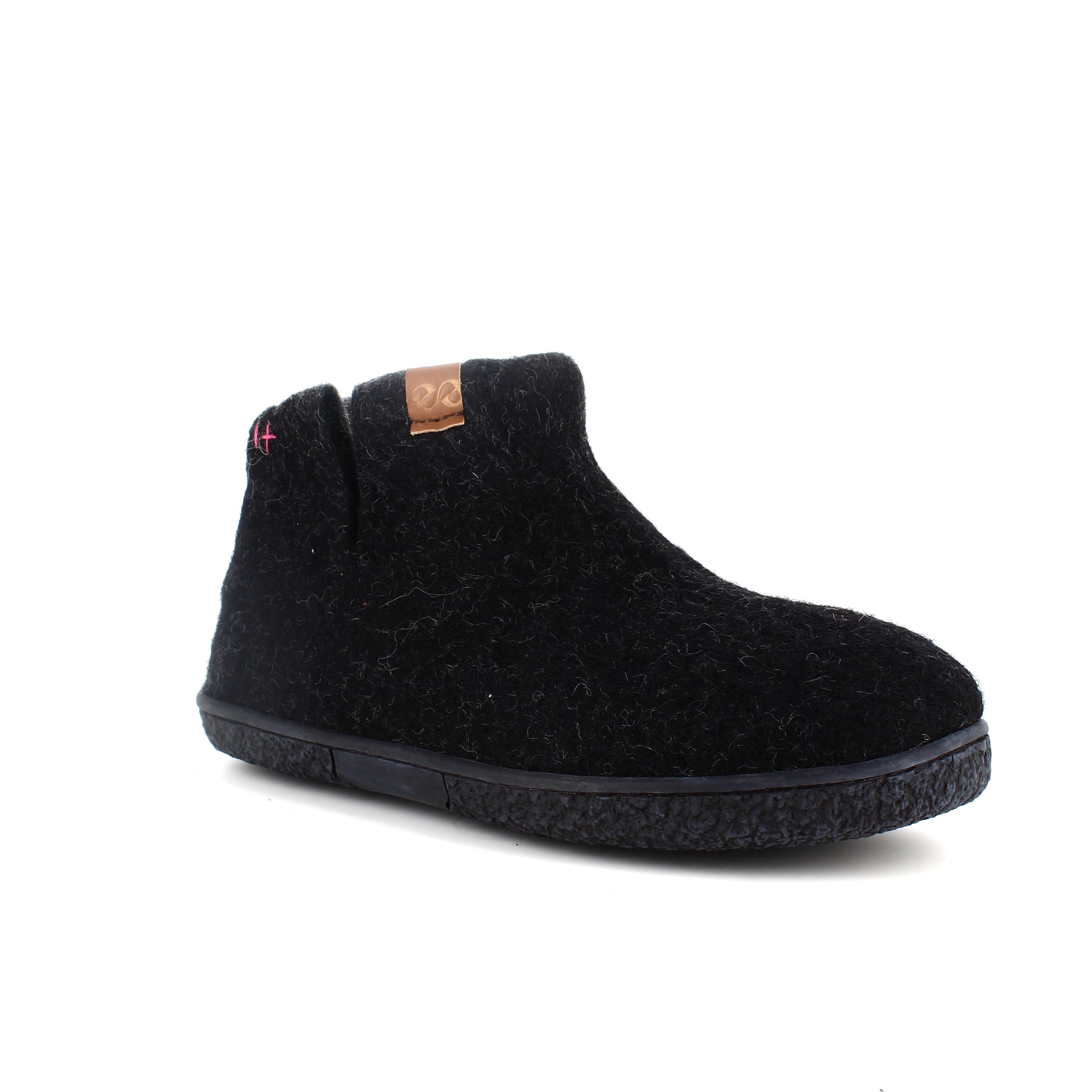 Høj sort sutsko i uld med skridhæmmende såler fra Green Comfort