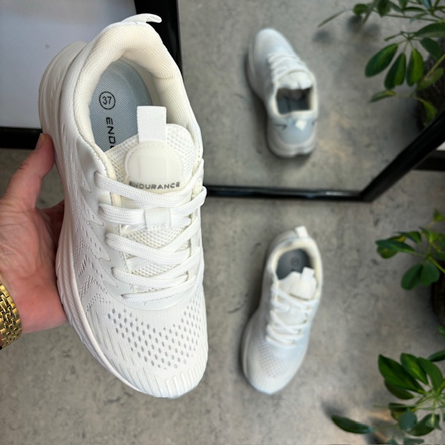 Hvid åndbar sko fra Endurance med effektiv stødabsorbering