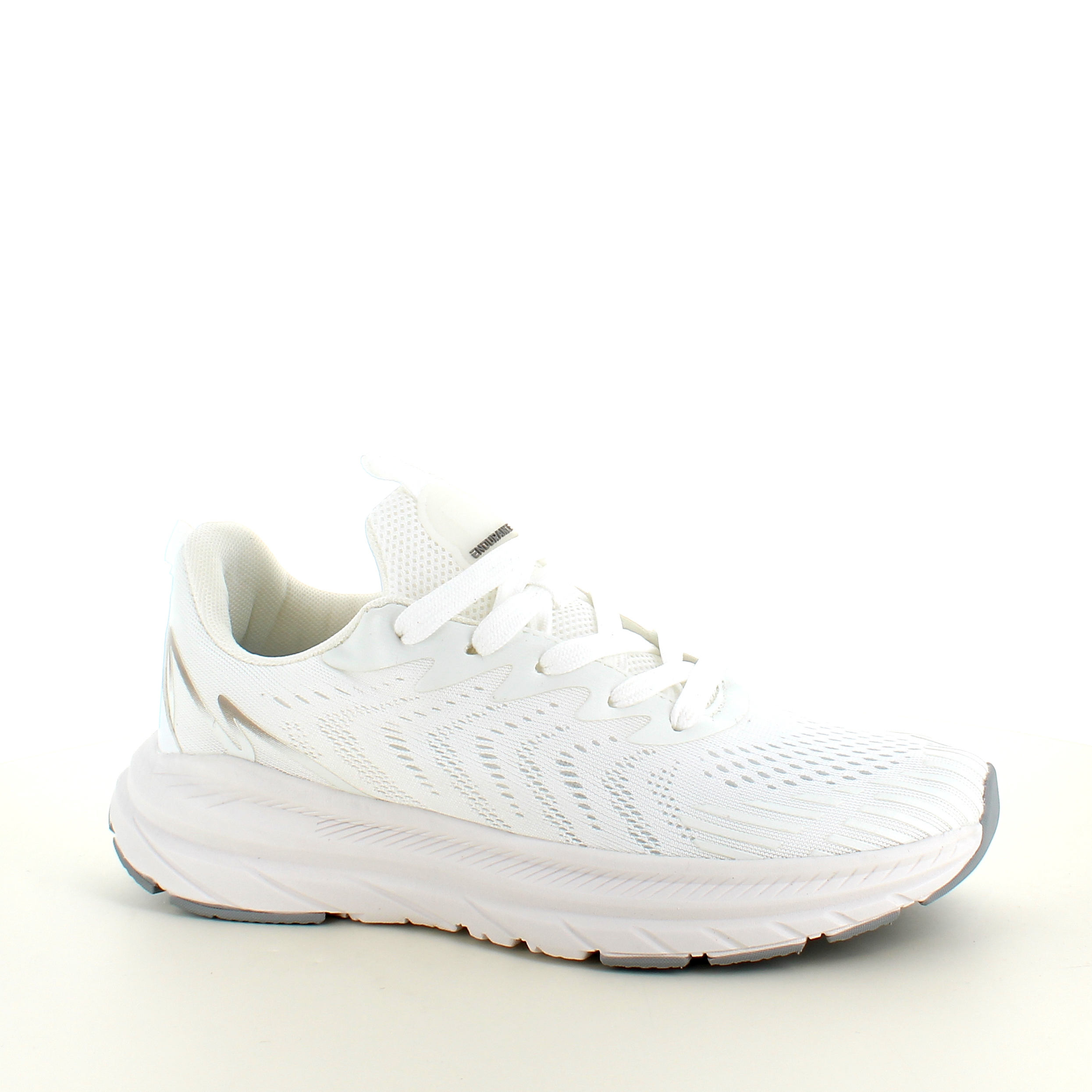 Hvid åndbar sko fra Endurance med effektiv stødabsorbering.