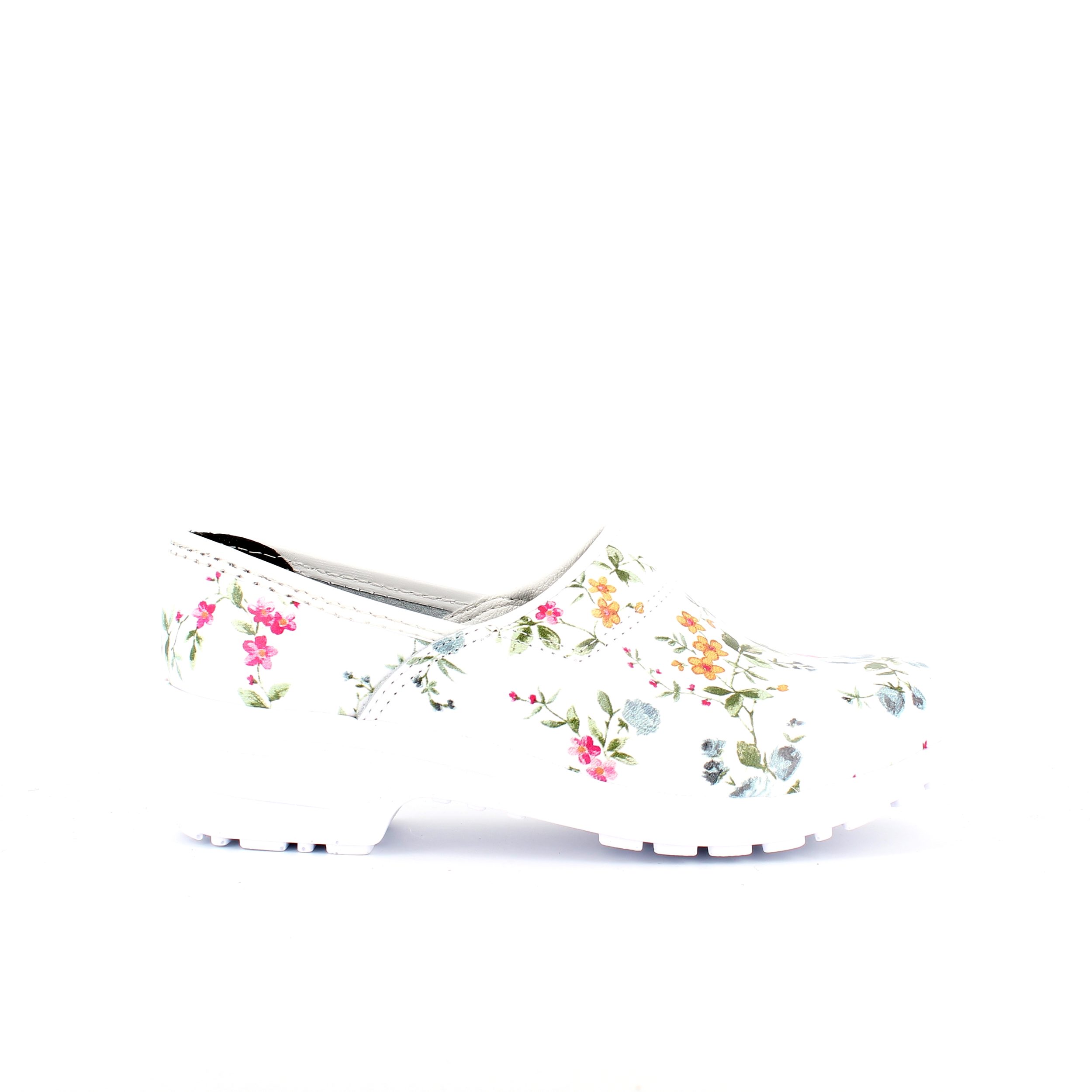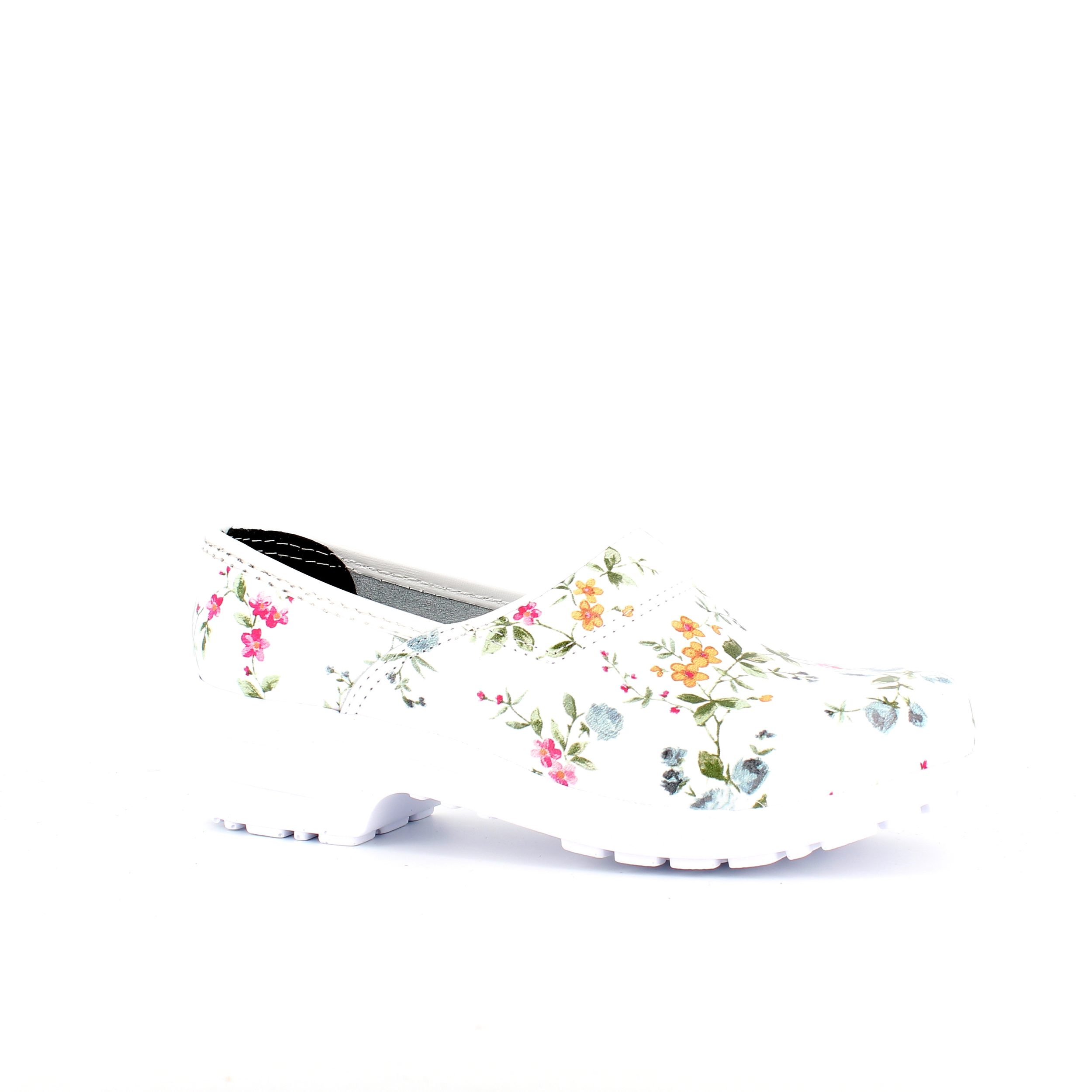 Hvid blomstret træsko i Dansk kvalitet med kap.
